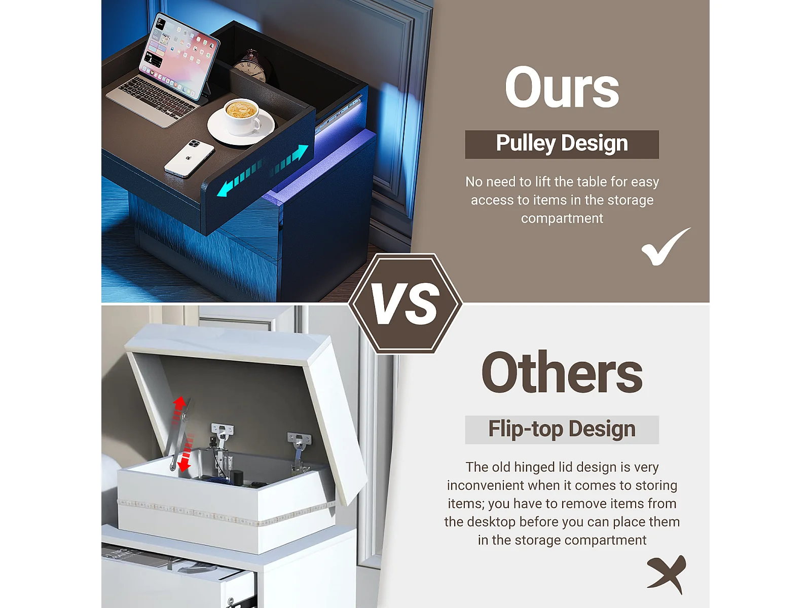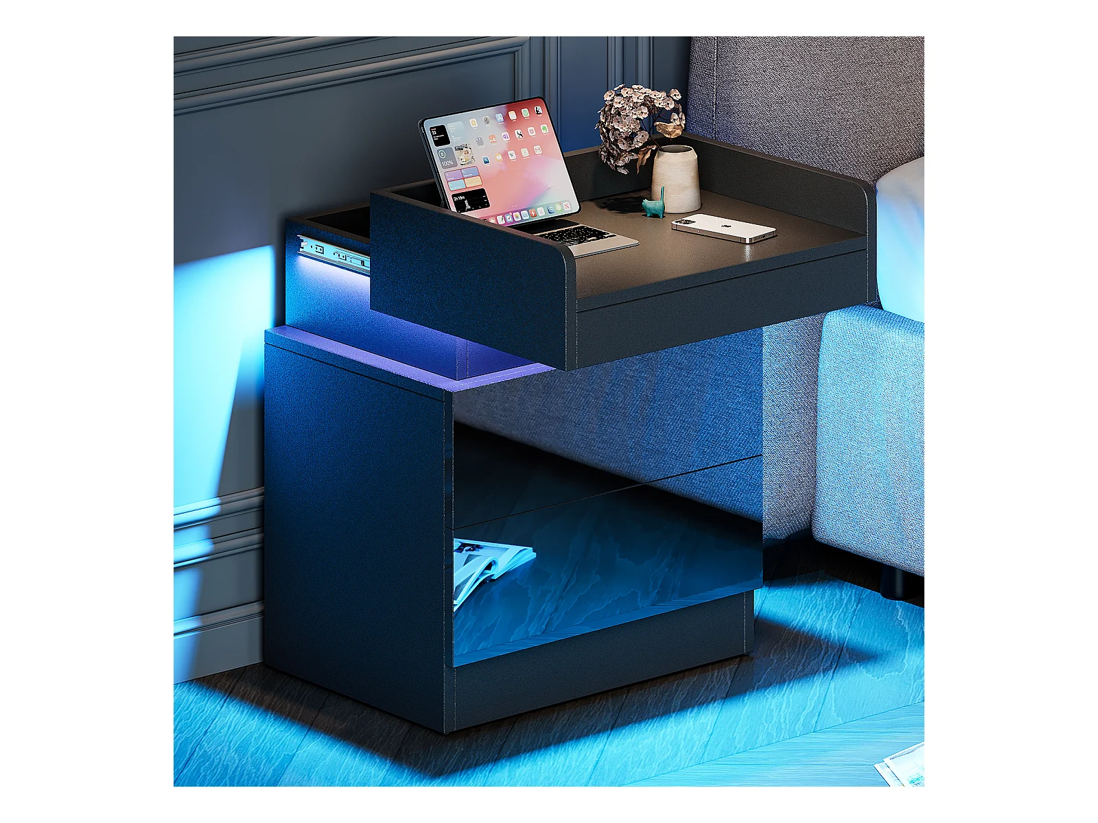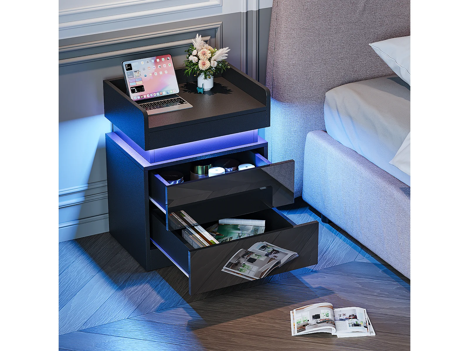 Table de Chevet avec Bande LED Multicolore et 2 tiroirs de rangement,Chevet avec Espace de stockage au niveau supérieur,45x33.5x58cm,Noir