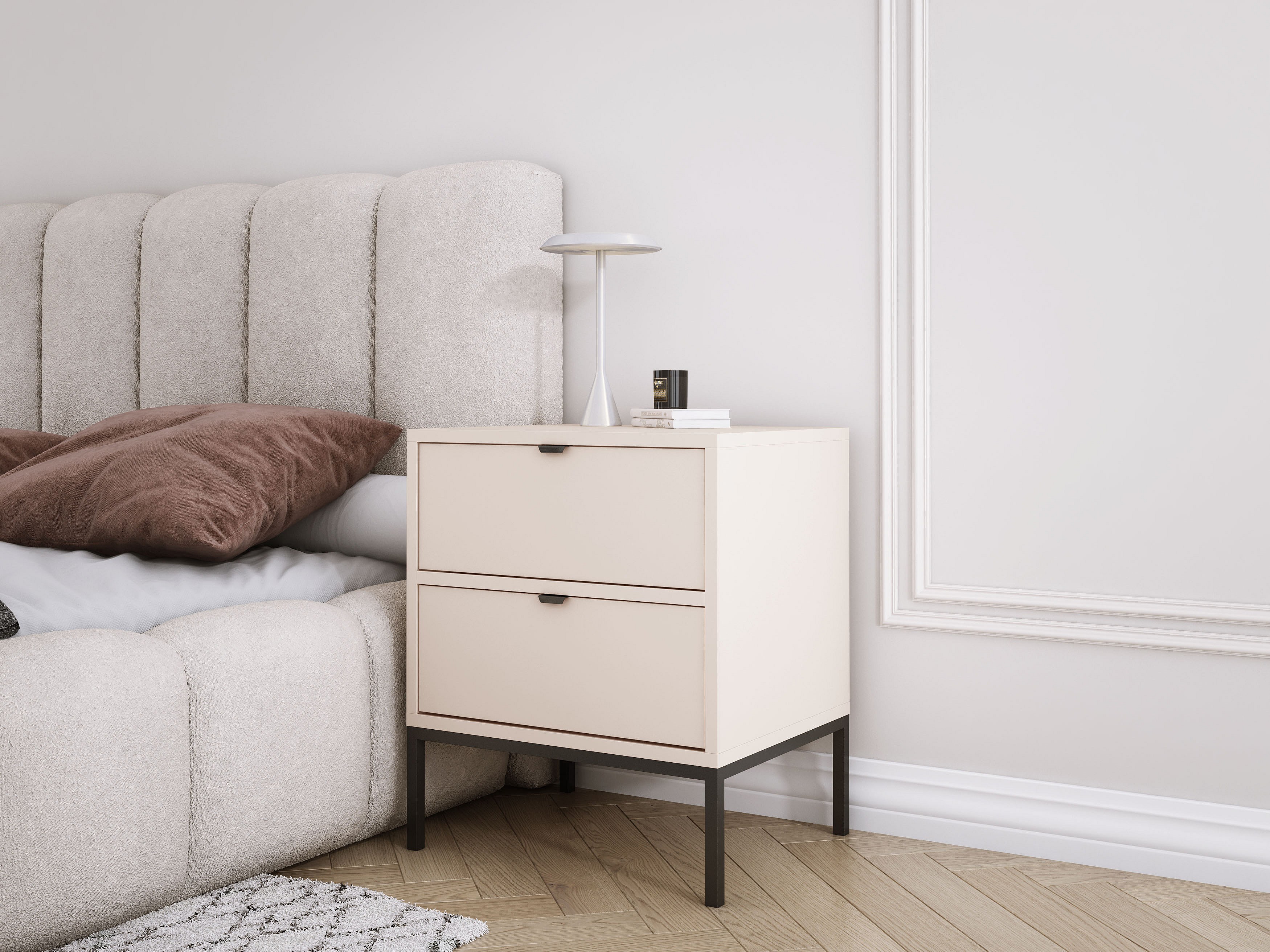 Table de chevet avec deux tiroirs et cadre, poignée dorée, Cachemire, 50 x 40 x 58 cm