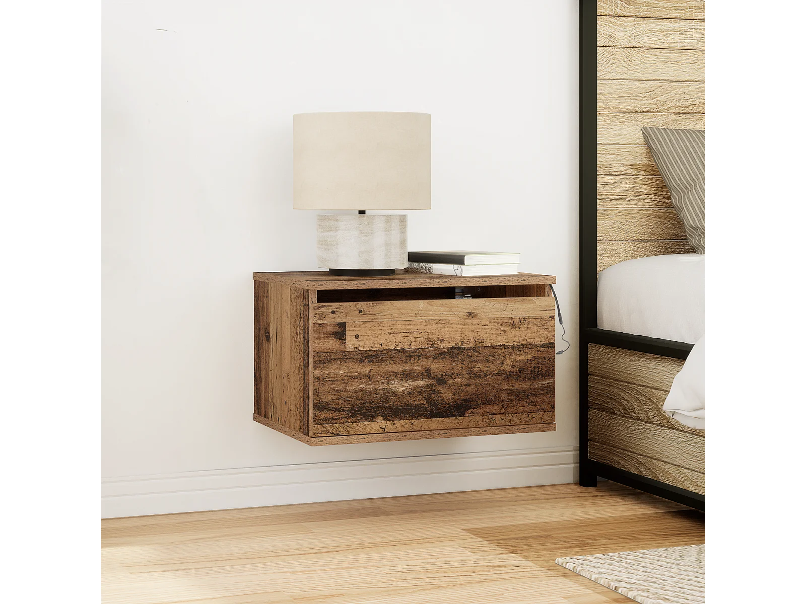 Table de chevet avec éclairage LED monté au mur en bois ancien 50x36x30 cm