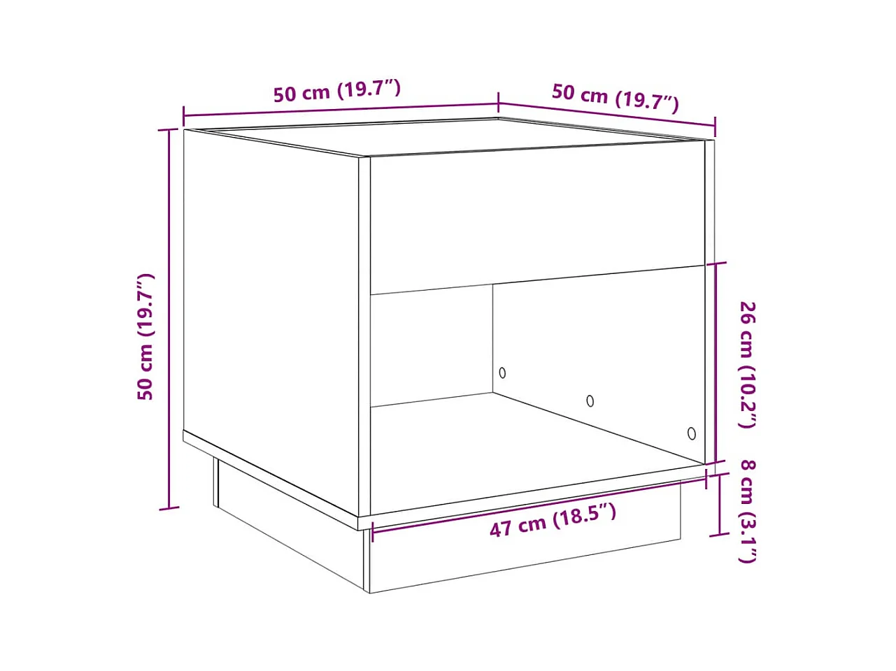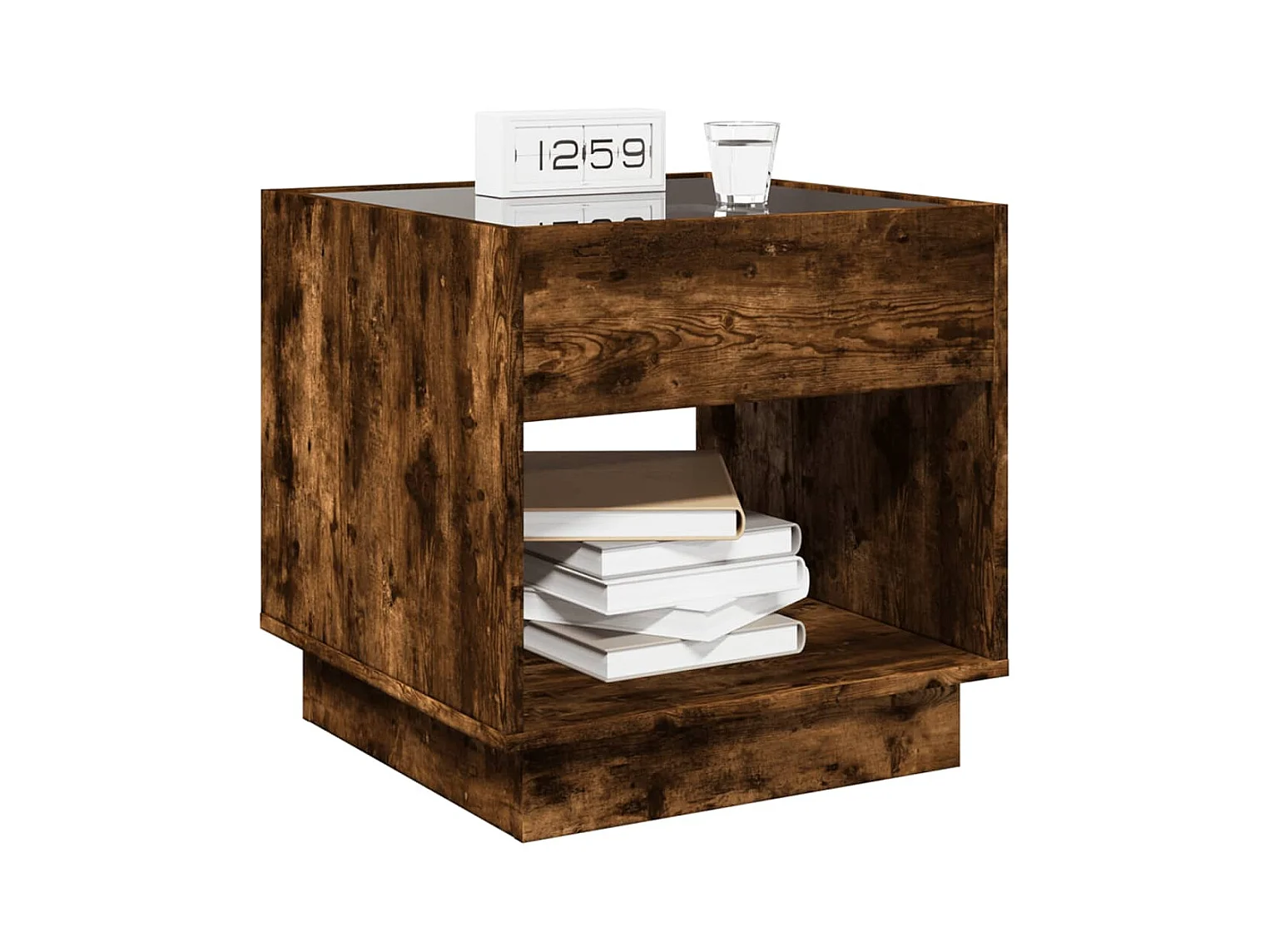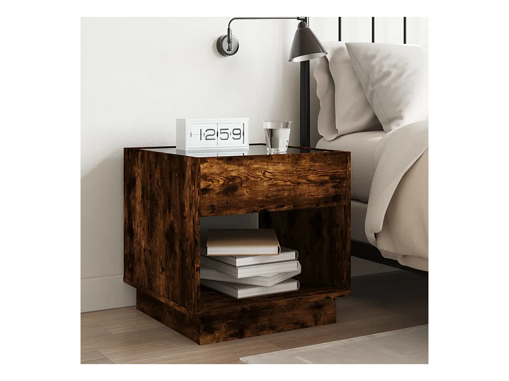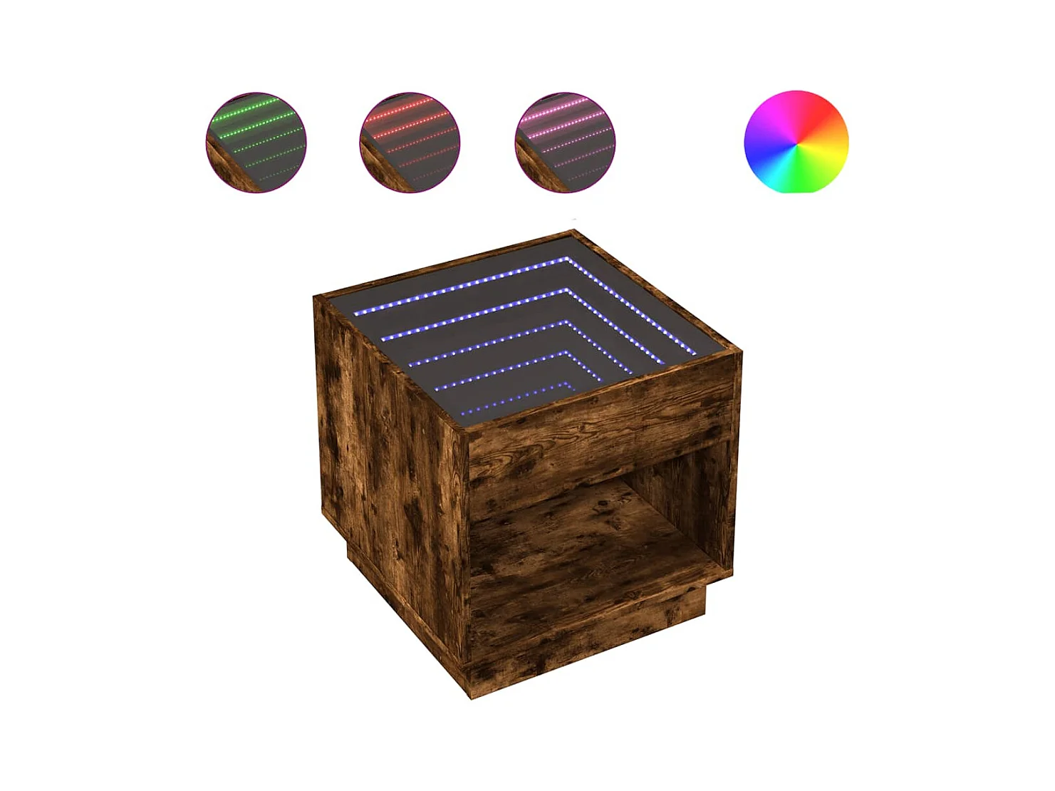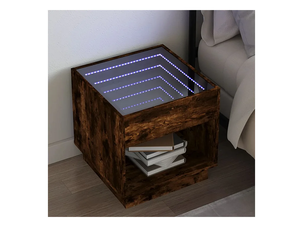 Table de chevet avec LED infini chêne fumé 50x50x50 cm