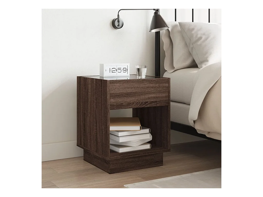 Table de chevet avec LED infini chêne marron 40x40x51 cm
