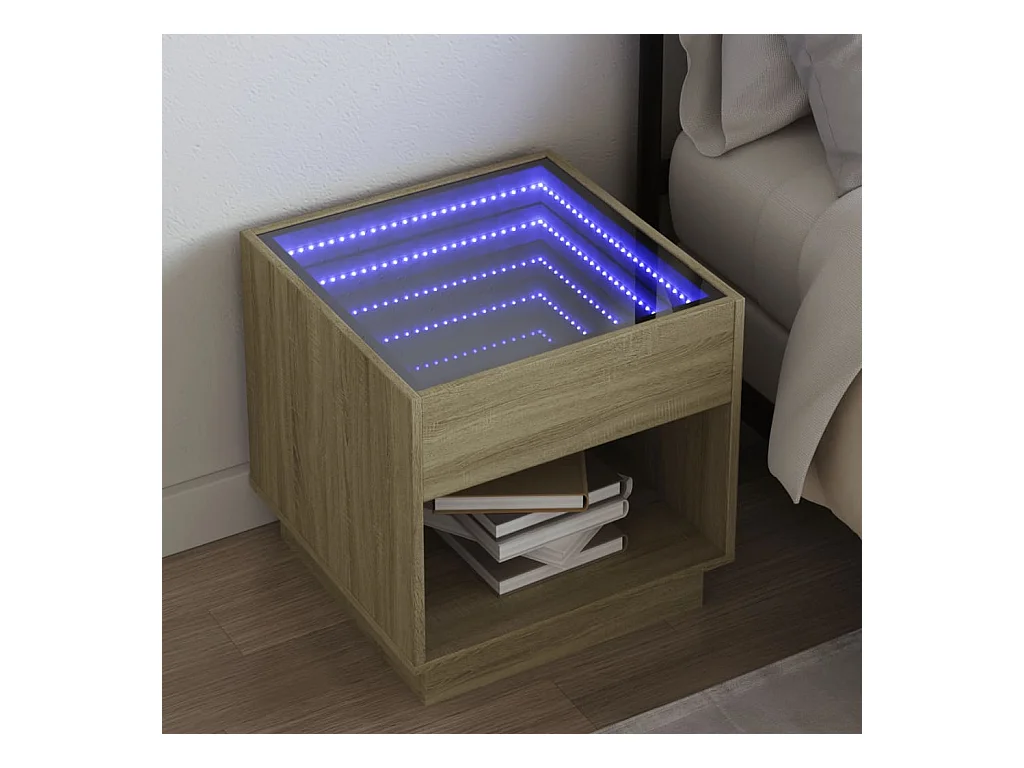 Table de chevet avec LED infini chêne sonoma 50x50x50 cm