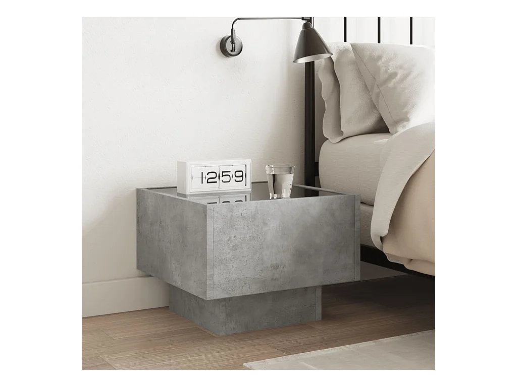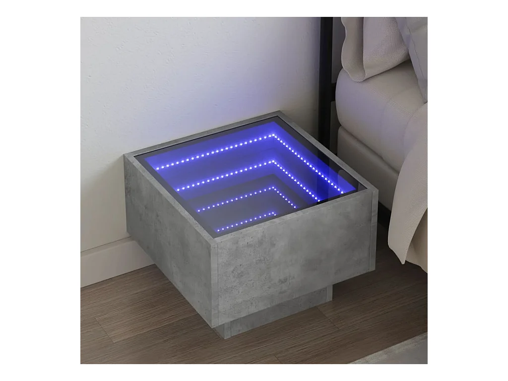 Table de chevet avec LED infini gris béton 40x40x50 cm