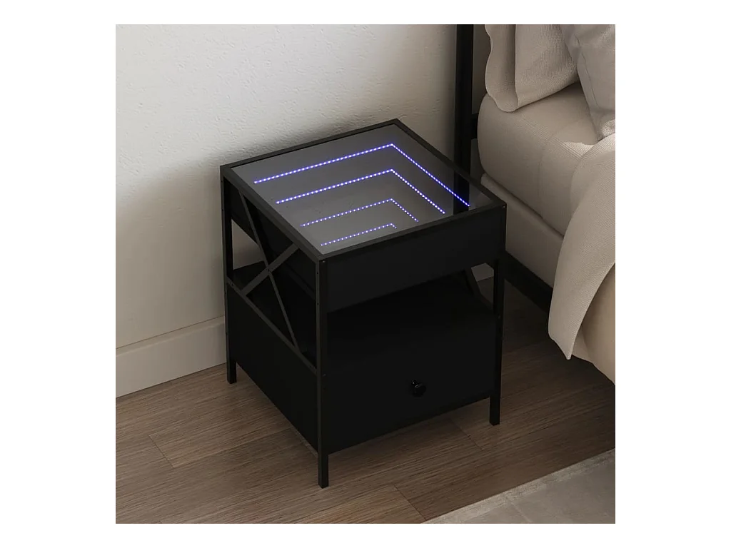 Table de chevet avec lumières LED noir 40x39x37 cm
