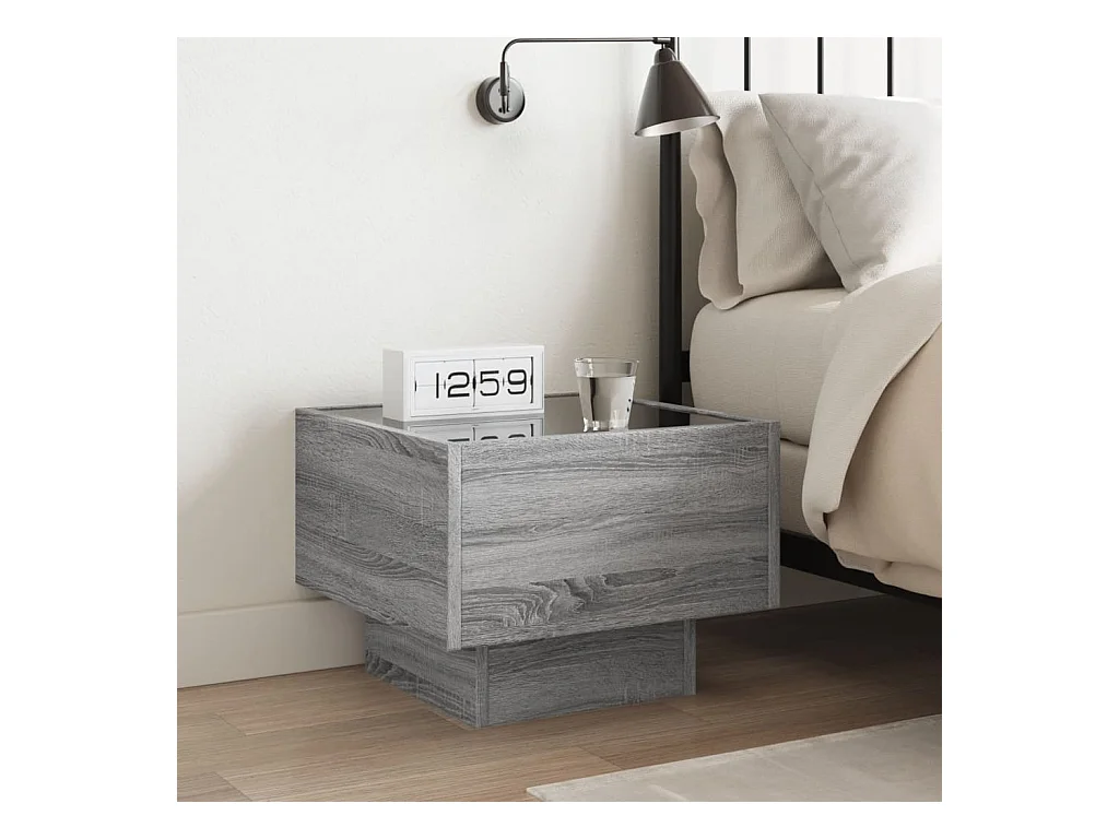 Table de chevet avec LED infini sonoma gris 40x40x50 cm