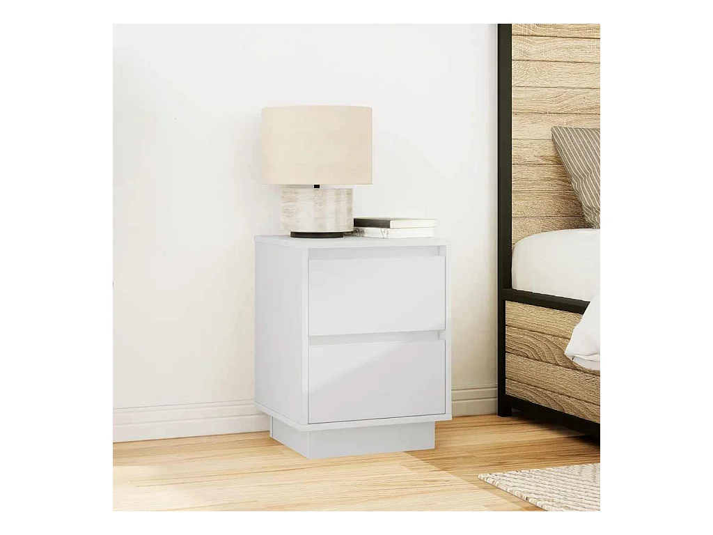 Tables de chevet et lumières LED 2pièces blanc bois d'ingénierie
