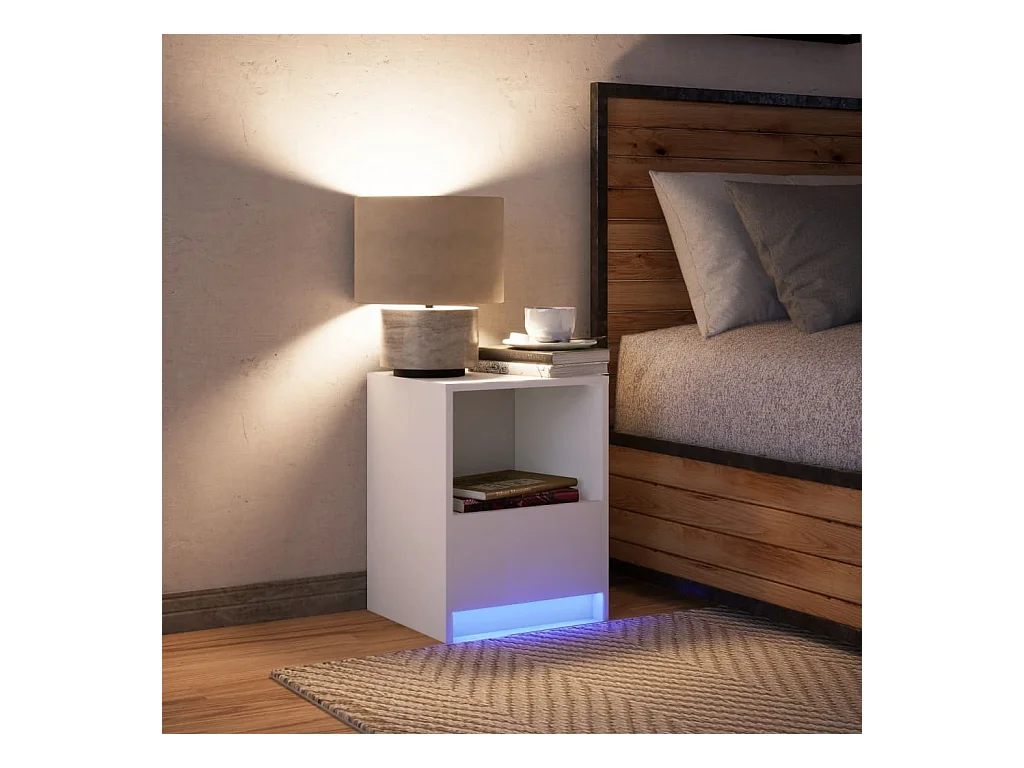 Table de chevet avec lumières LED blanc bois d'ingénierie