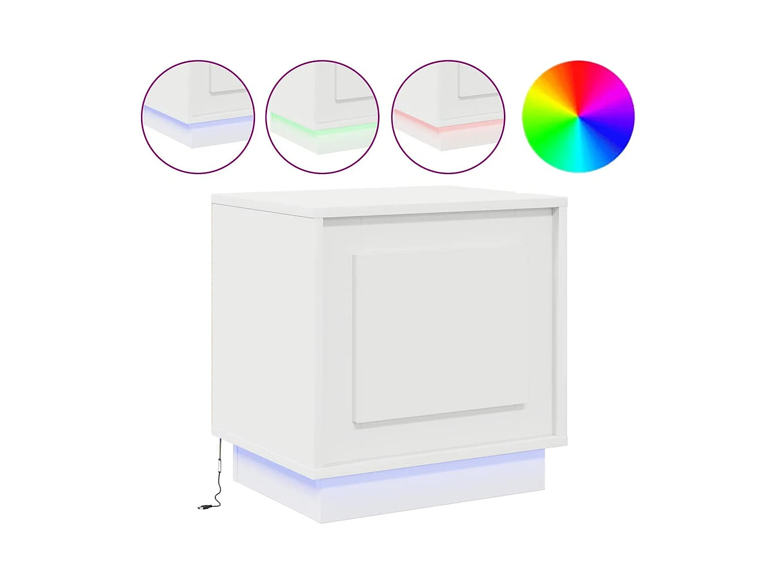 Table de chevet avec LED Blanc 50x34,5x50 cm