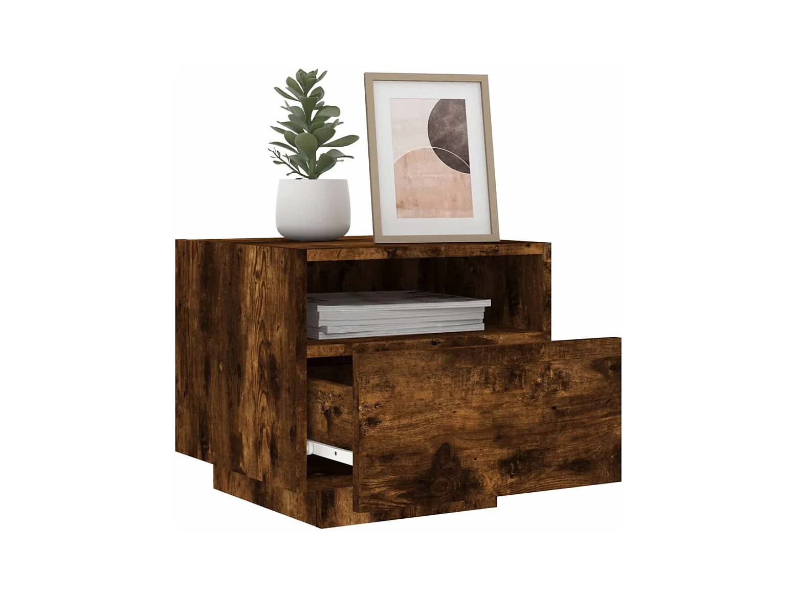 Table de chevet avec lumières LED chêne fumé 40x39x37 cm