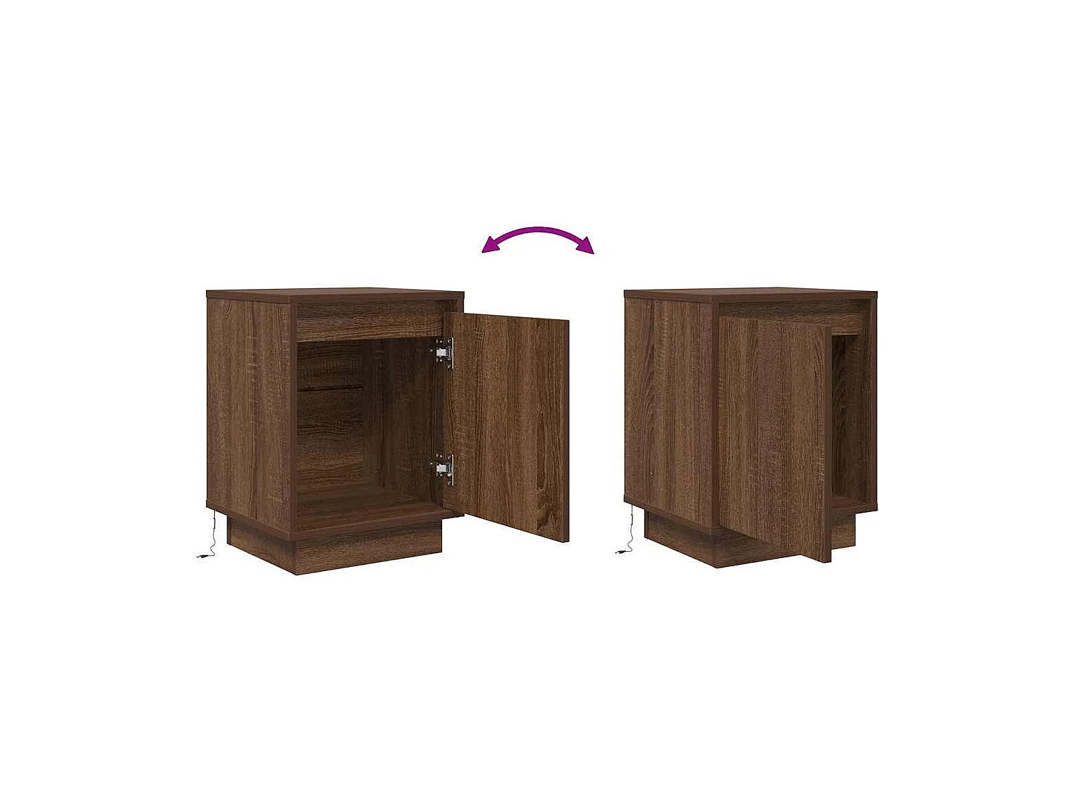 Tables de chevet et lumières LED 2 pièces chêne marron
