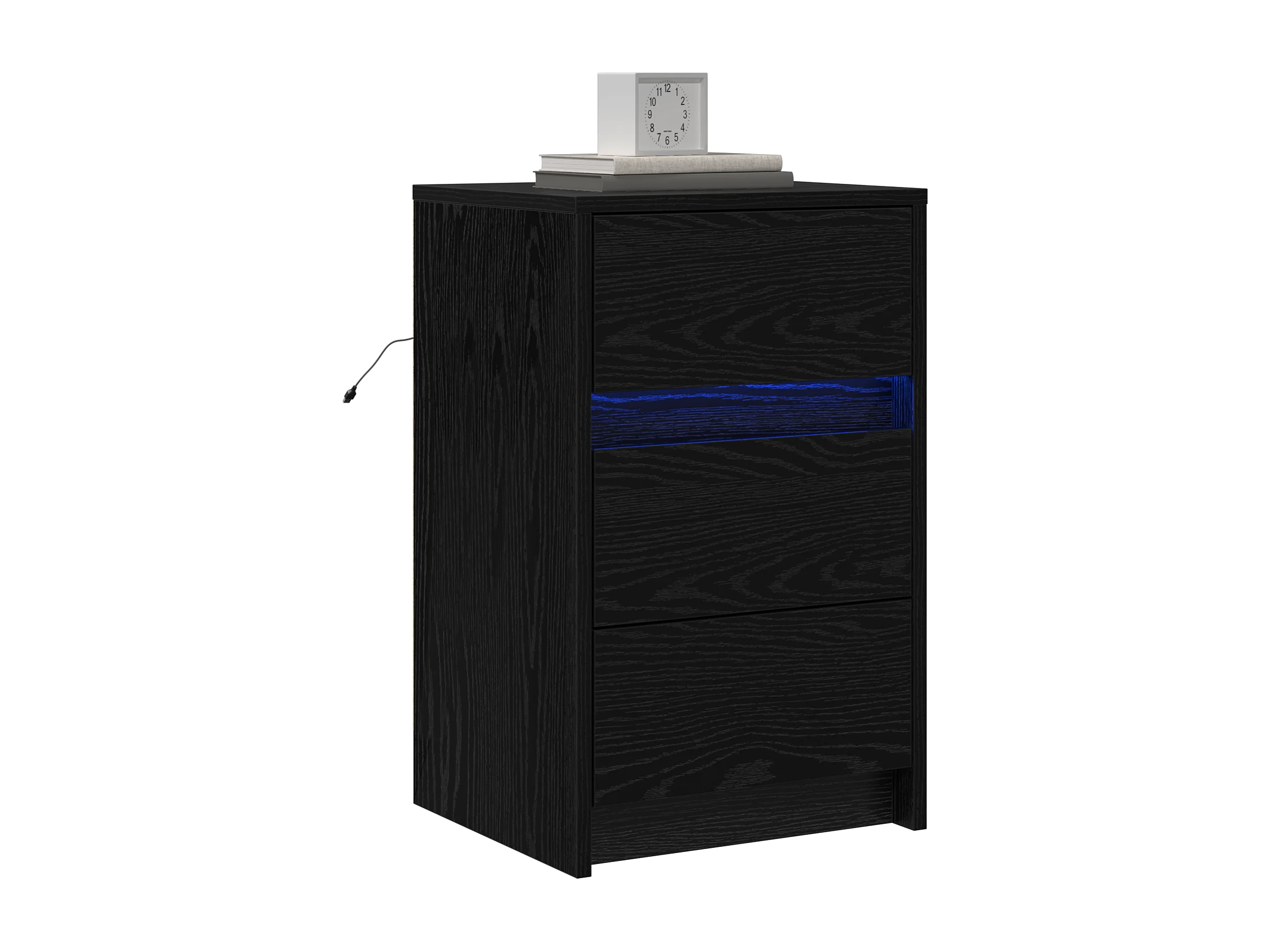 Table de chevet avec lumières LED Chêne noir Bois d'ingénierie