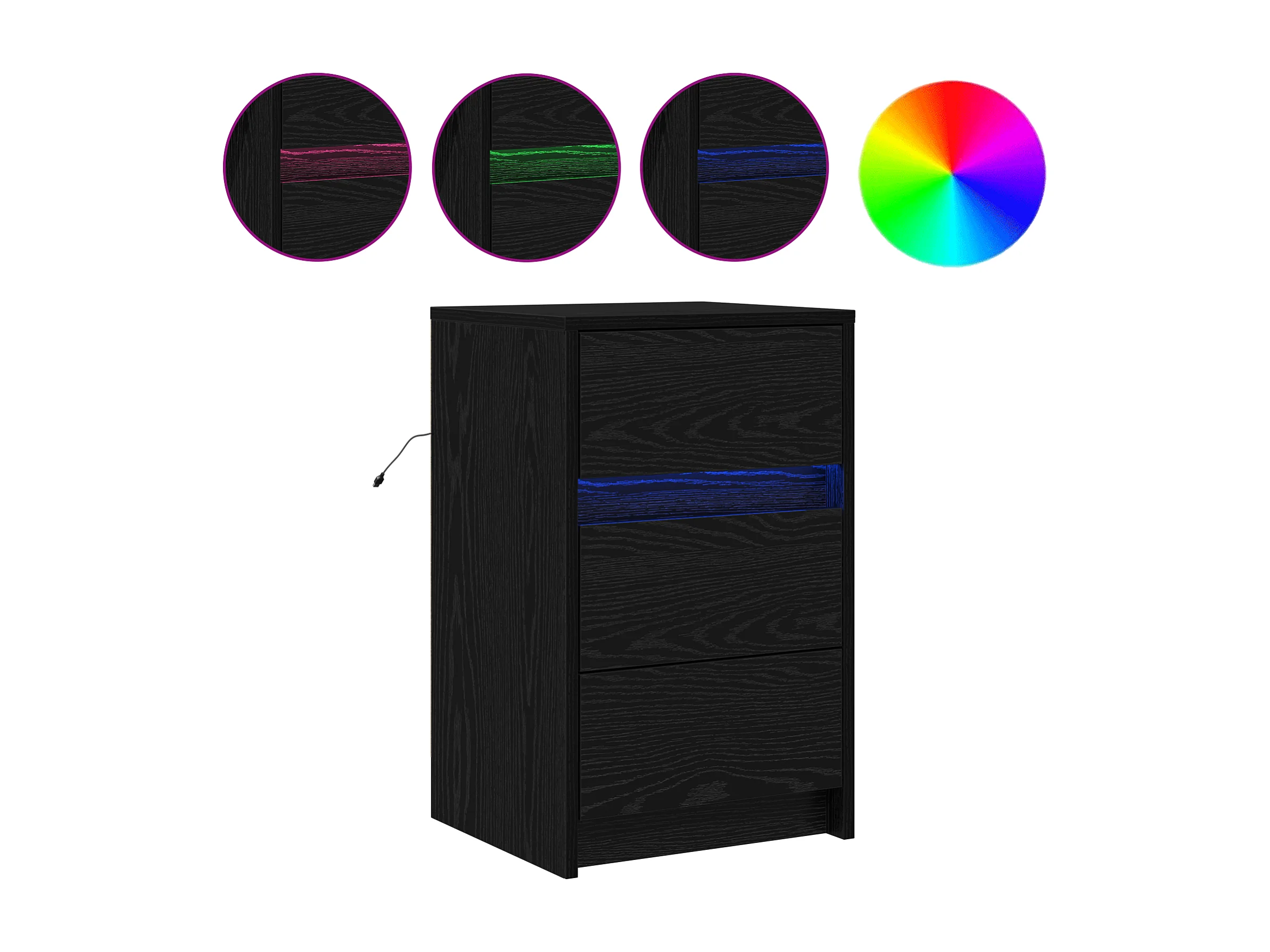 Table de chevet avec lumières LED noir 38x34x50 cm