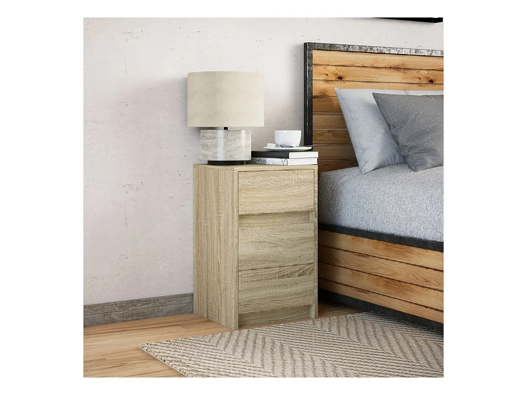Table de chevet et lumières LED chêne marron bois ingénierie