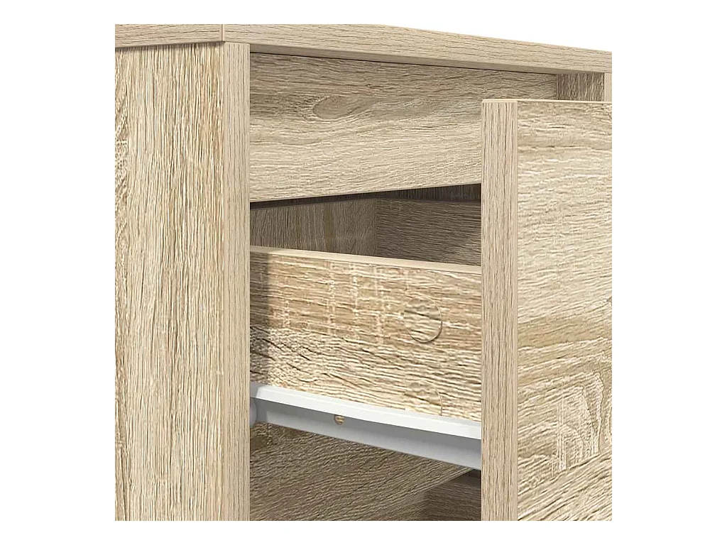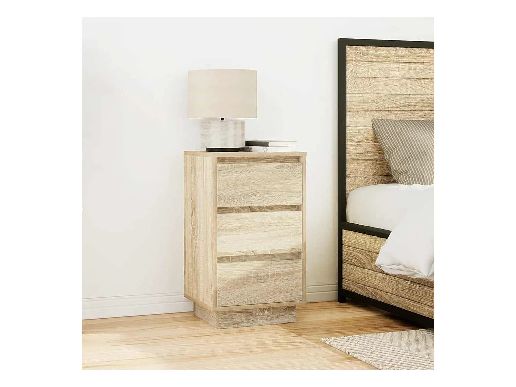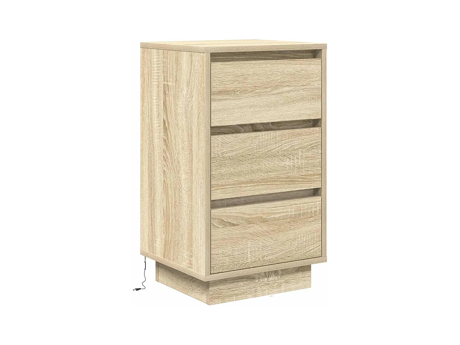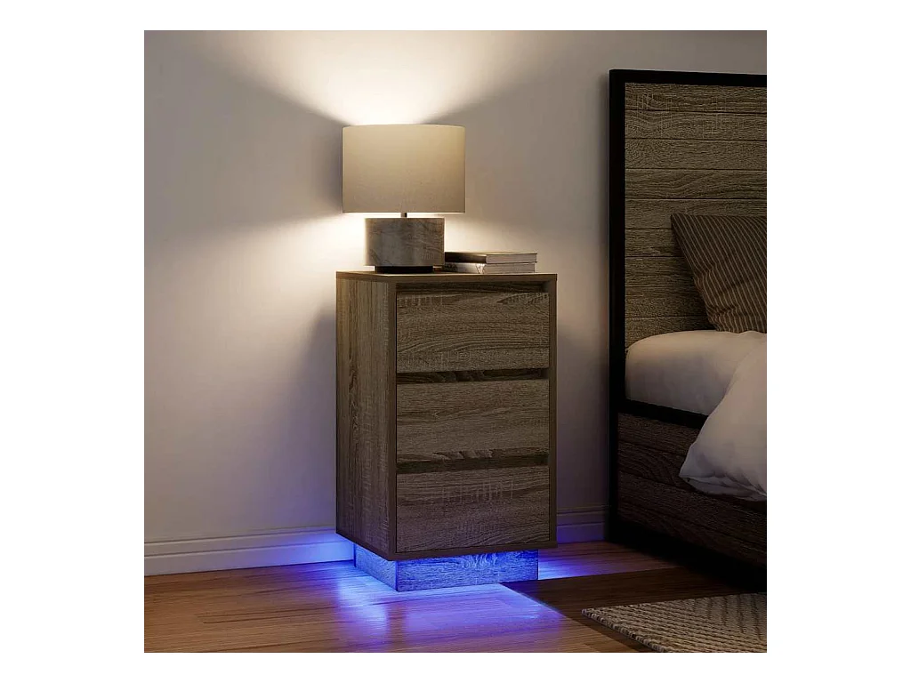 Table de chevet et lumières LED chêne marron bois ingénierie