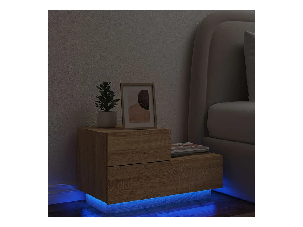 Table de chevet avec lumières LED chêne sonoma 70x36x40,5 cm