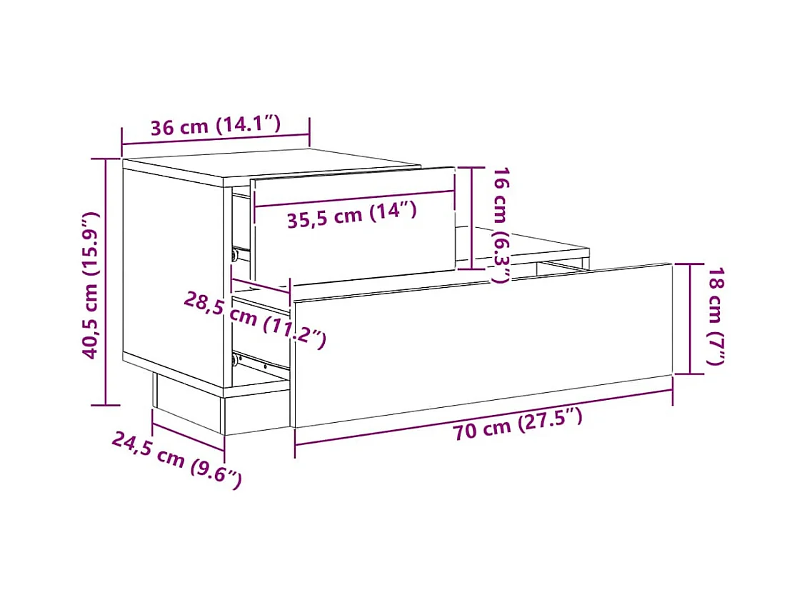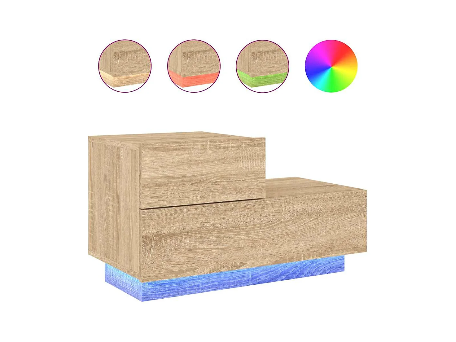 Table de chevet avec lumières LED chêne sonoma 70x36x40,5 cm
