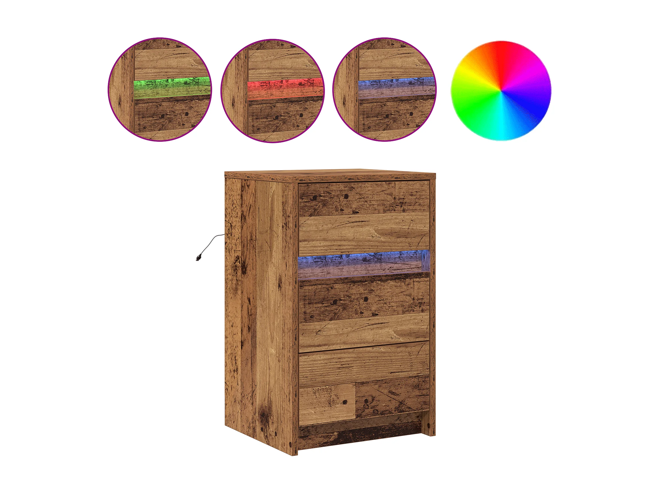 Table de chevet avec lumières LED en bois ancien