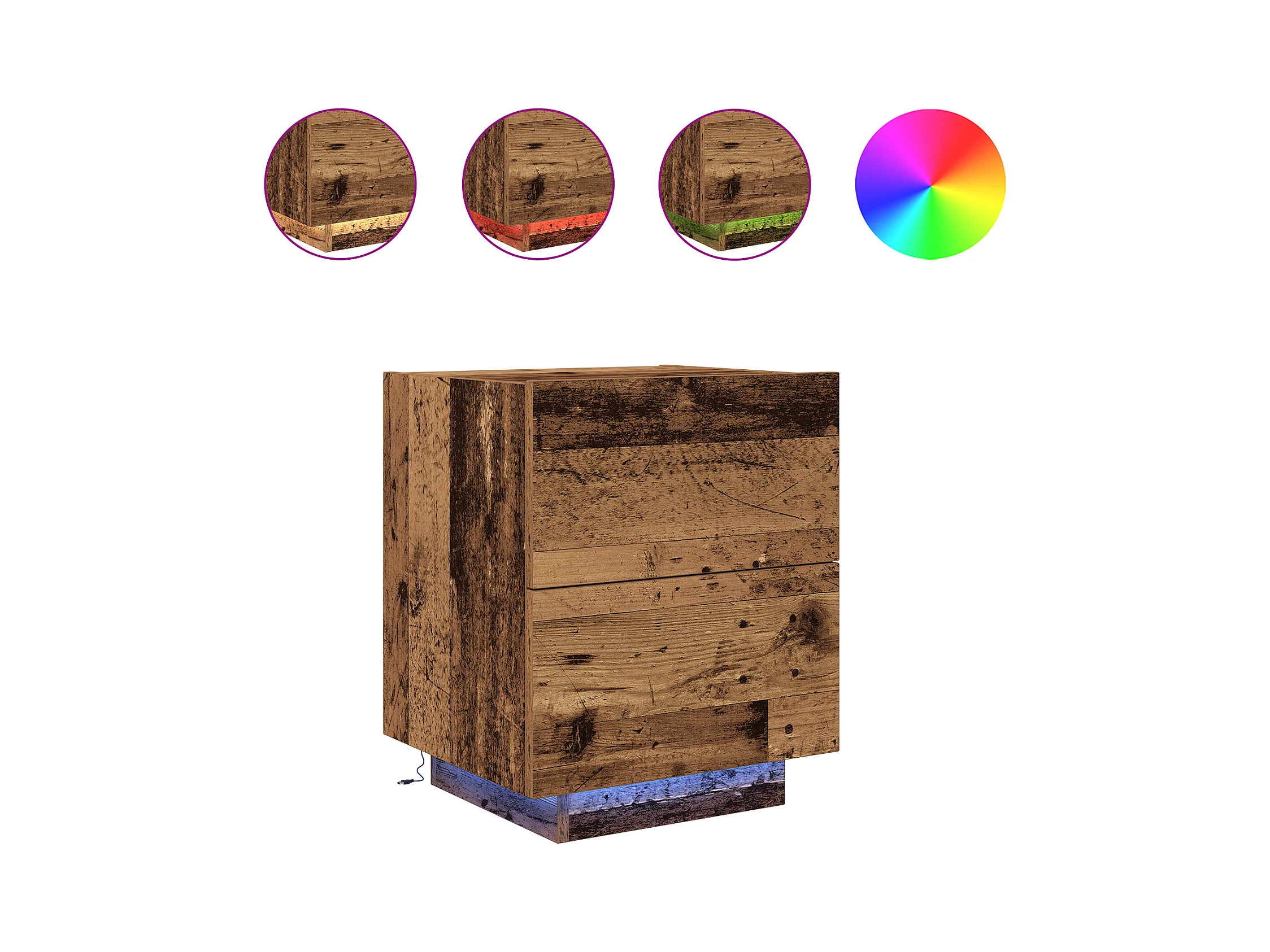 Table de chevet avec lumières LED en vieux bois 45x40x55 cm