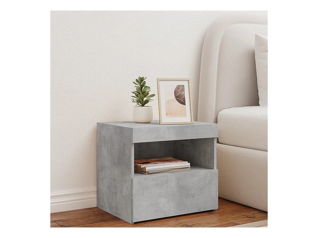 Table de chevet avec lumières LED gris béton 50x40x45 cm