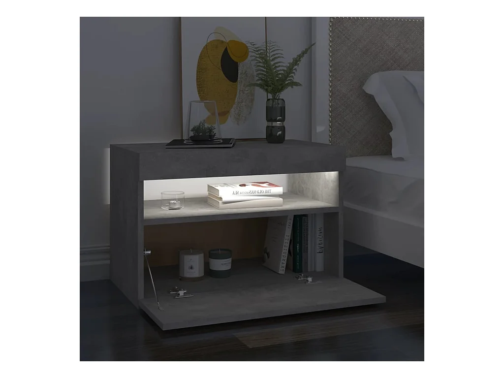Table de chevet avec lumières LED gris béton 60x35x40 cm KEFWE54793