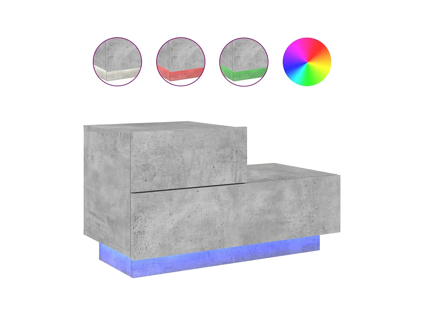 Table de chevet avec lumières LED gris béton 70x36x40,5 cm