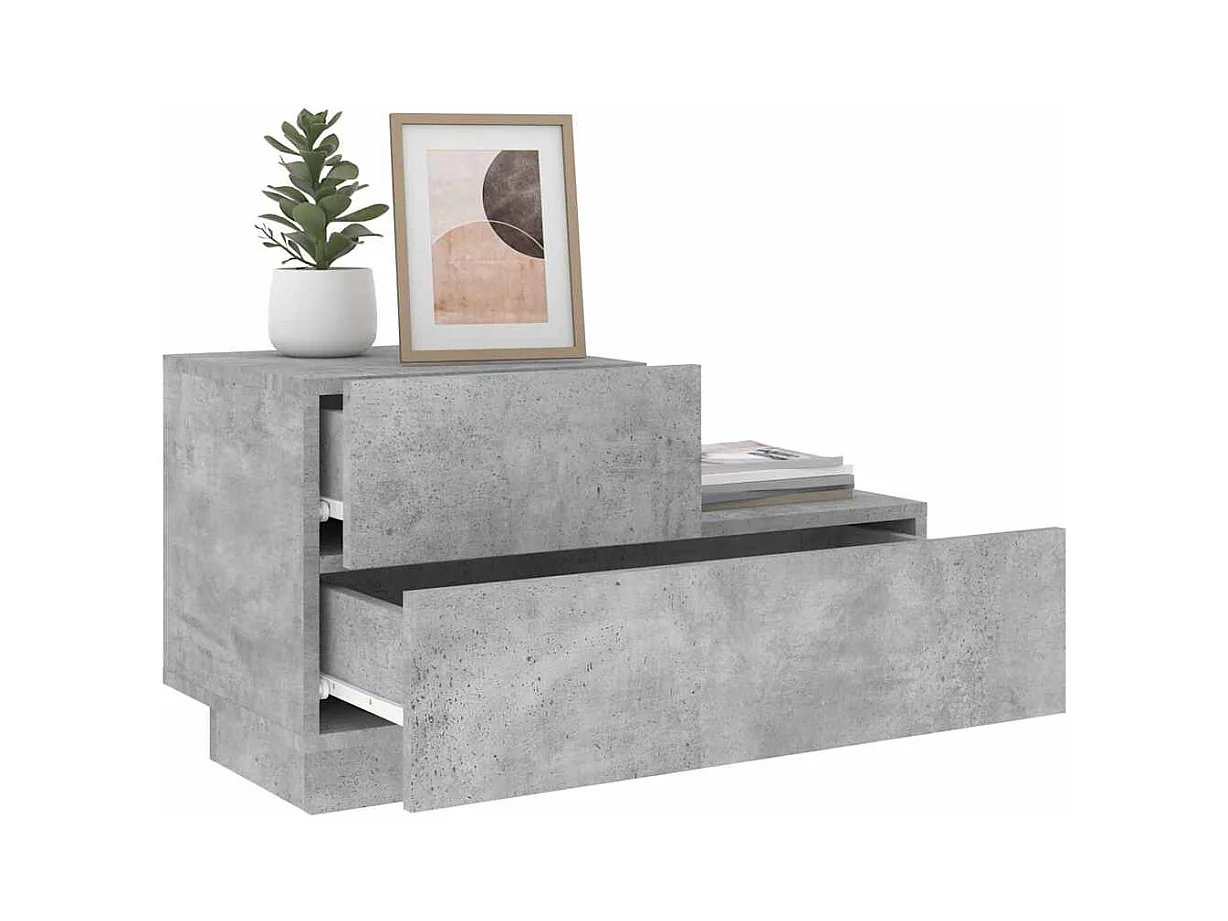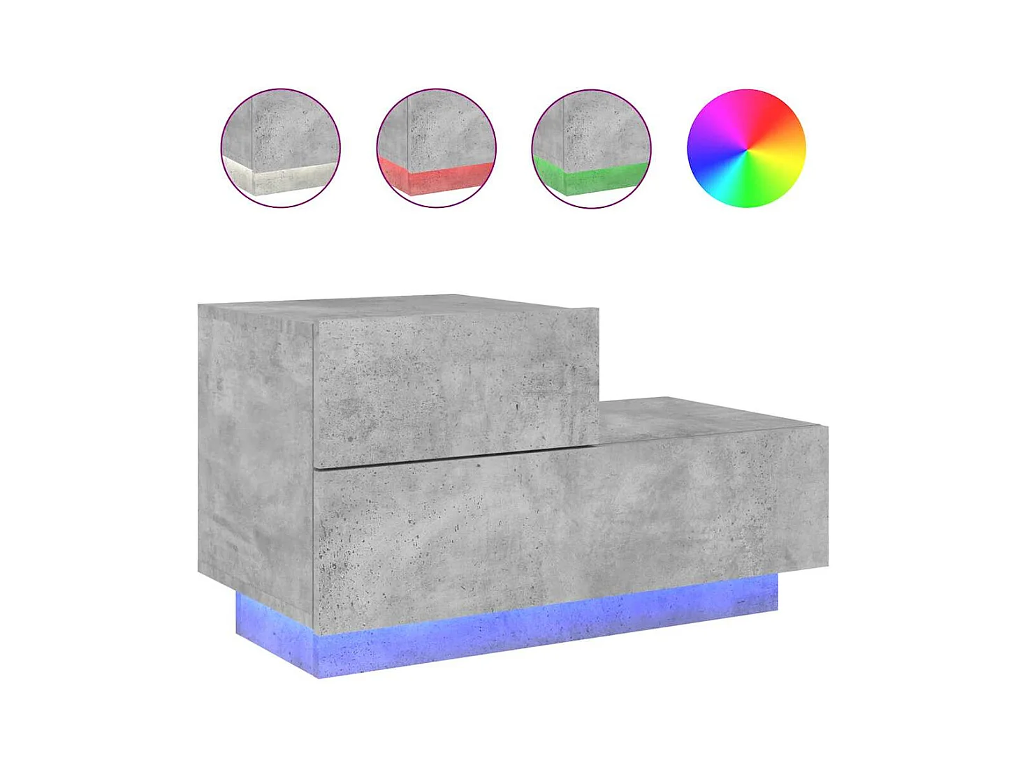 Table de chevet avec lumières LED gris béton 70x36x40,5 cm