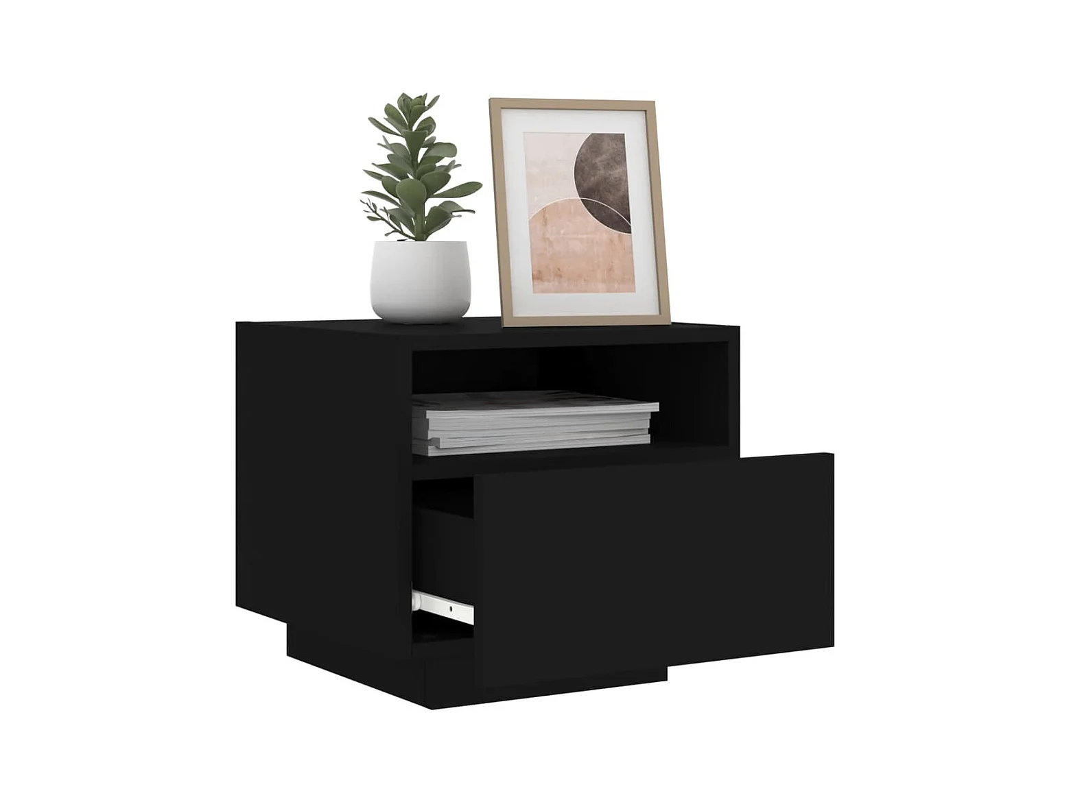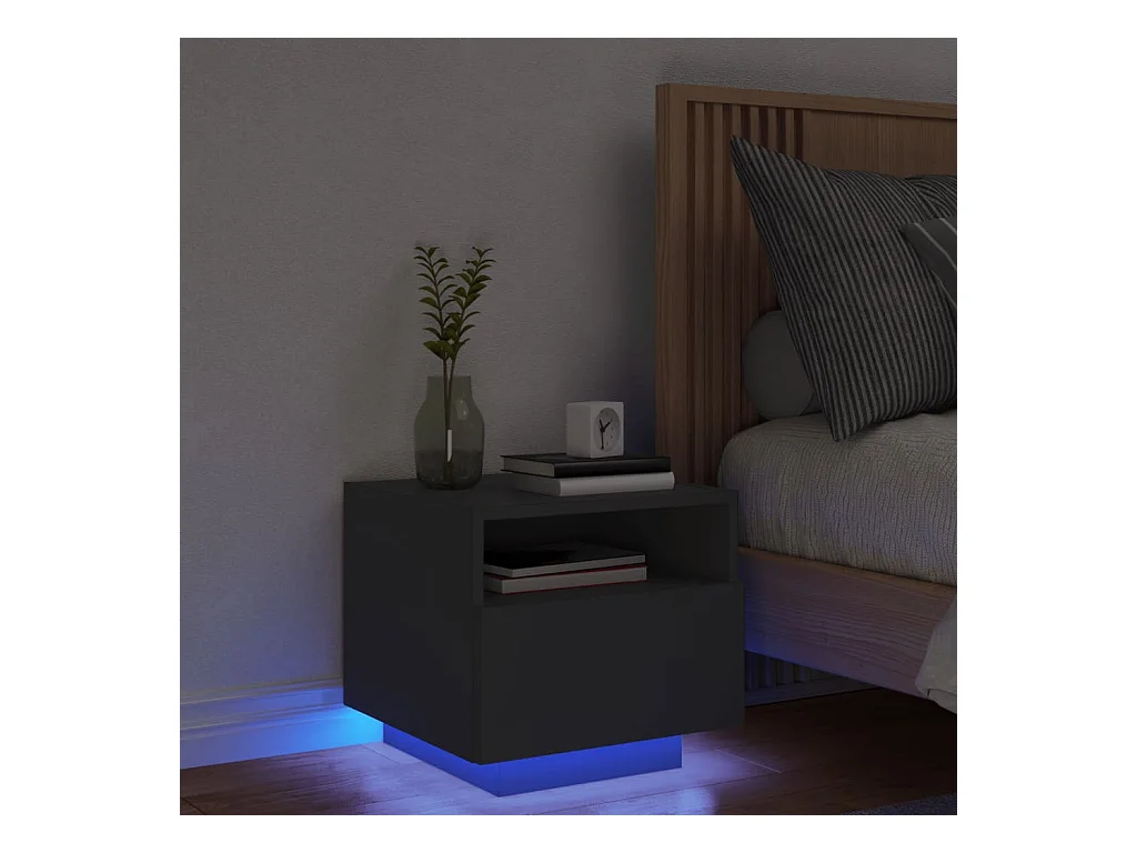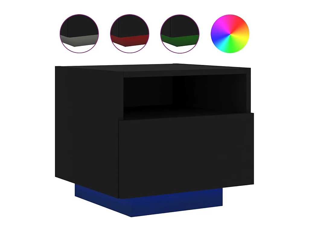 Table de chevet avec lumières LED noir 60x35x40 cm KEFWE73590