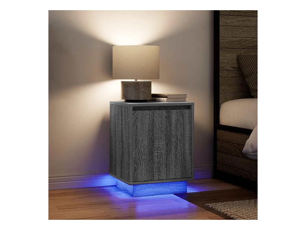Table de chevet avec lumières LED sonoma gris 38x34x50 cm