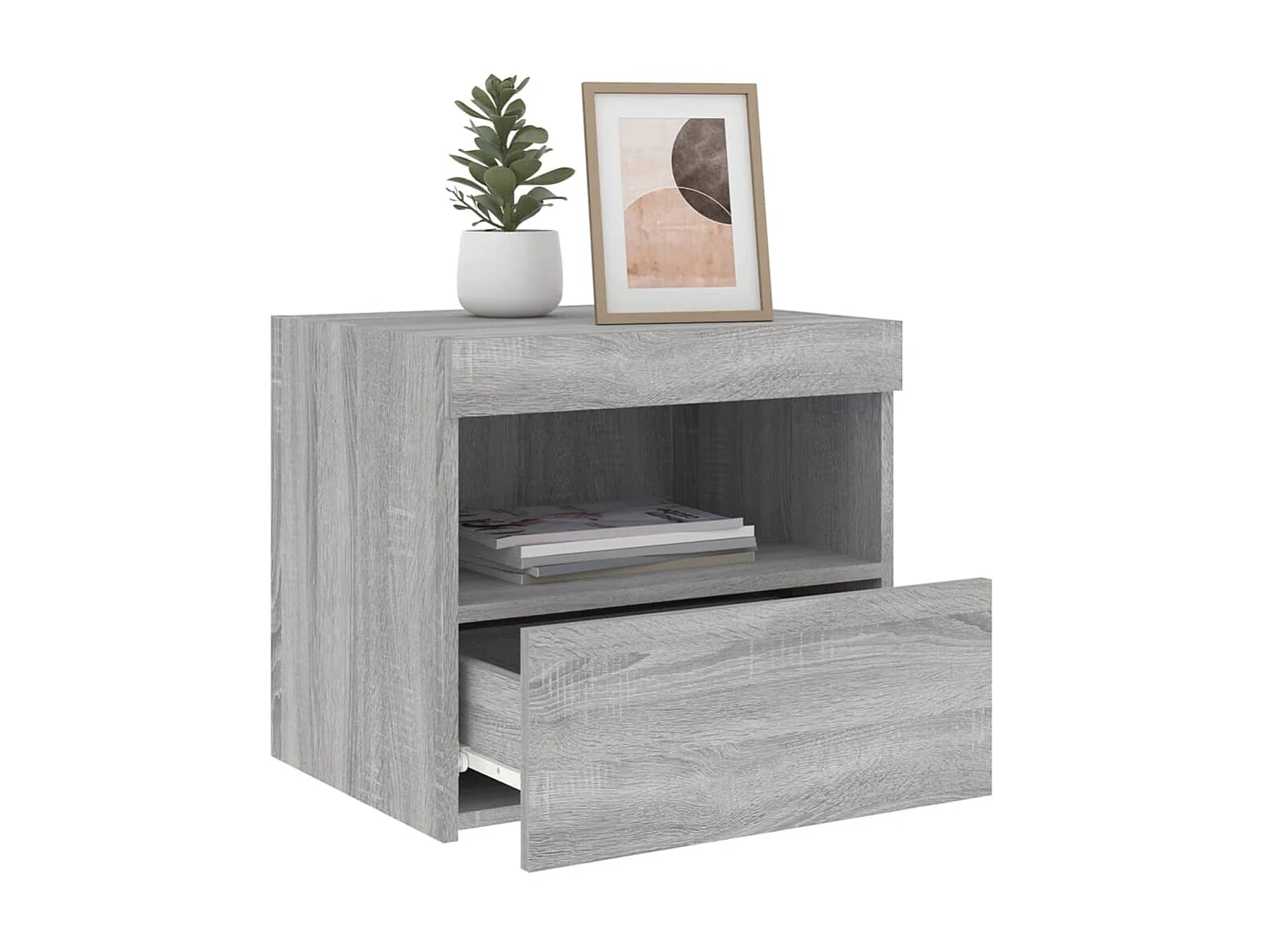 Lot de 2 Tables de chevet murales avec lumières LED sonoma gris GHR33418