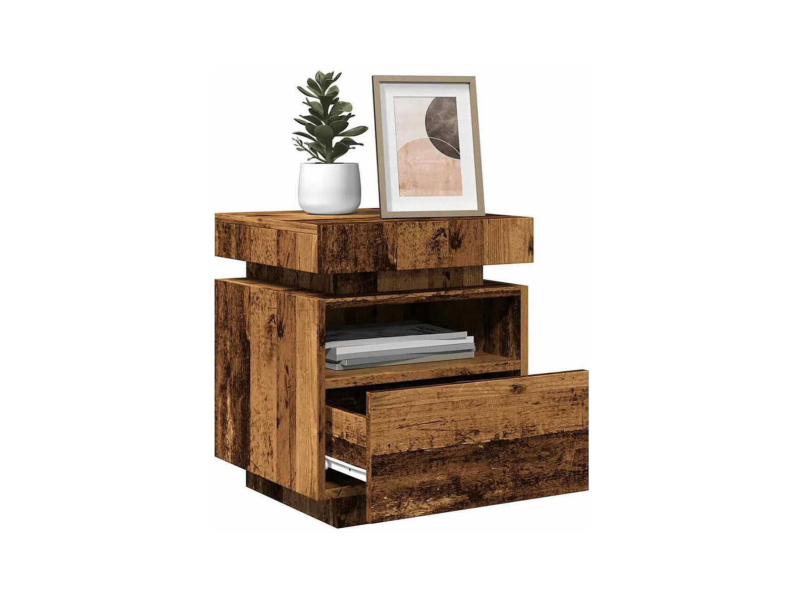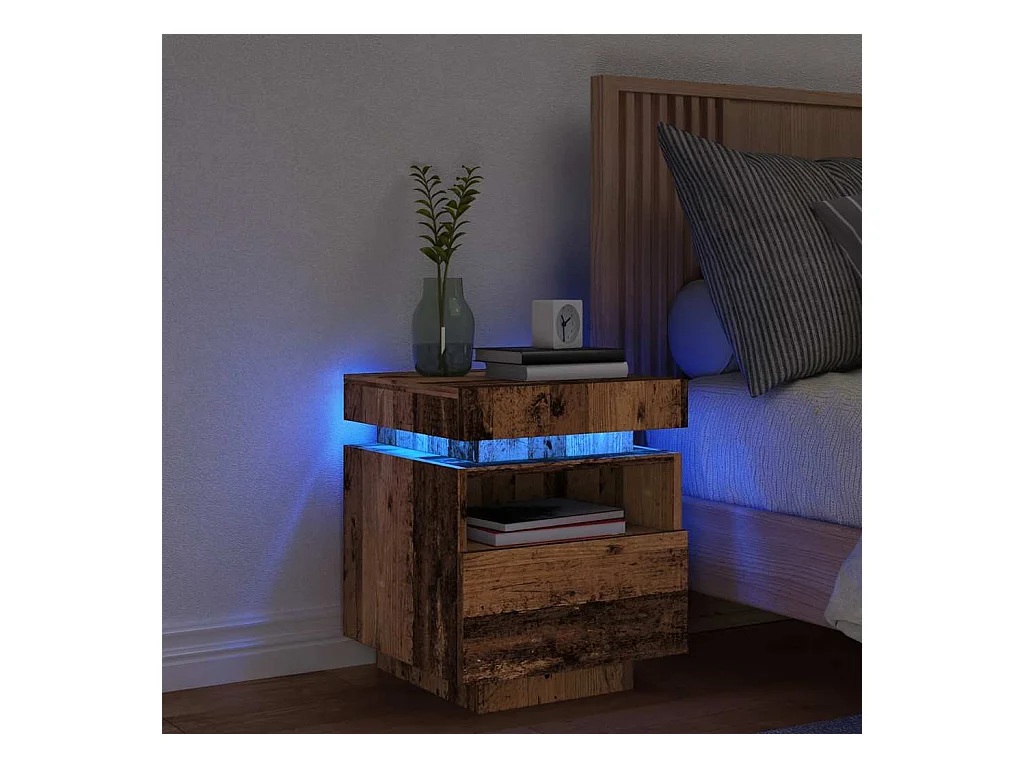Table de chevet avec lumières LED vieux bois 40x39x48,5 cm