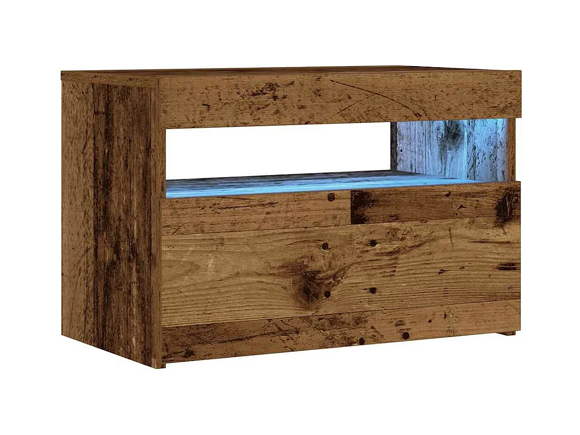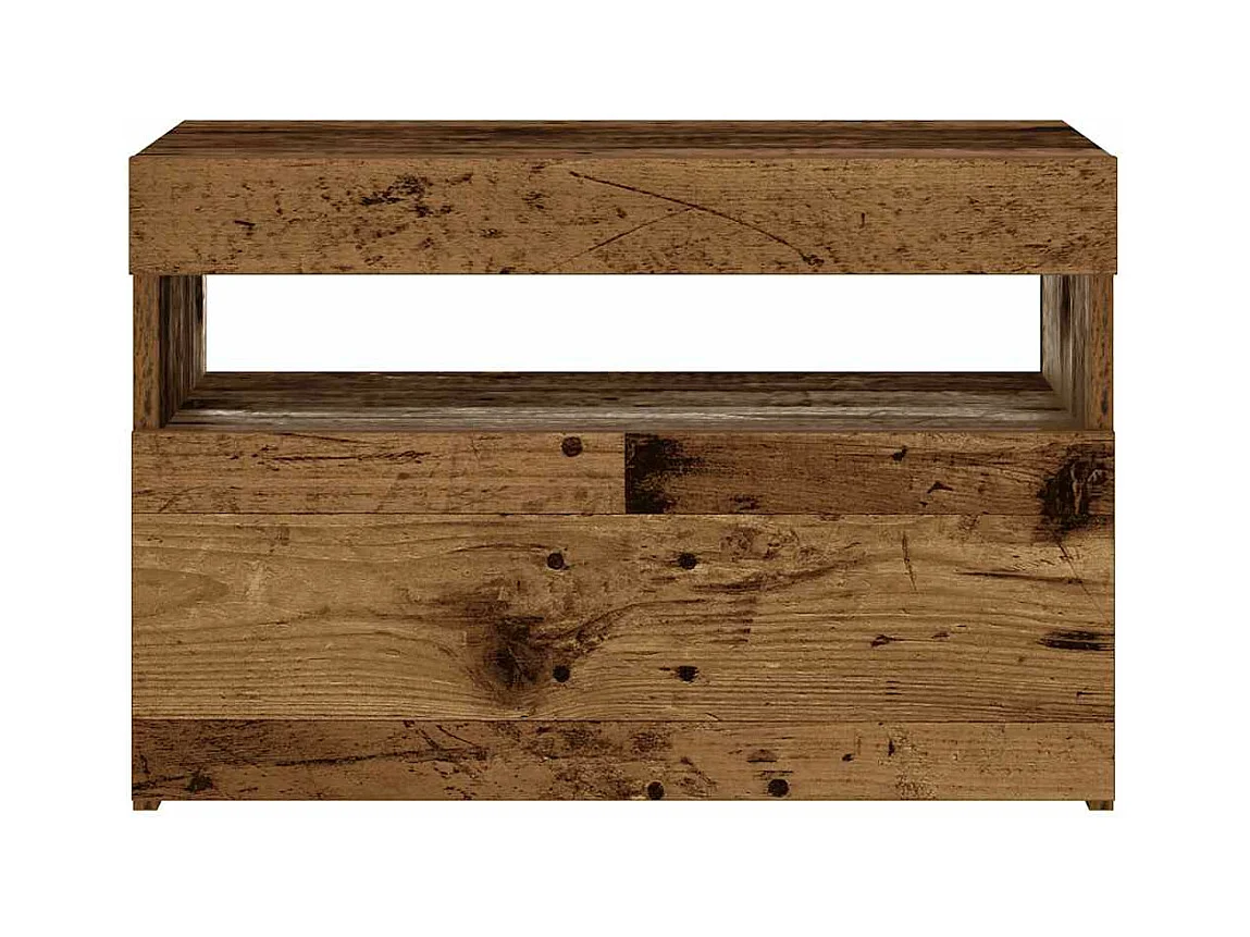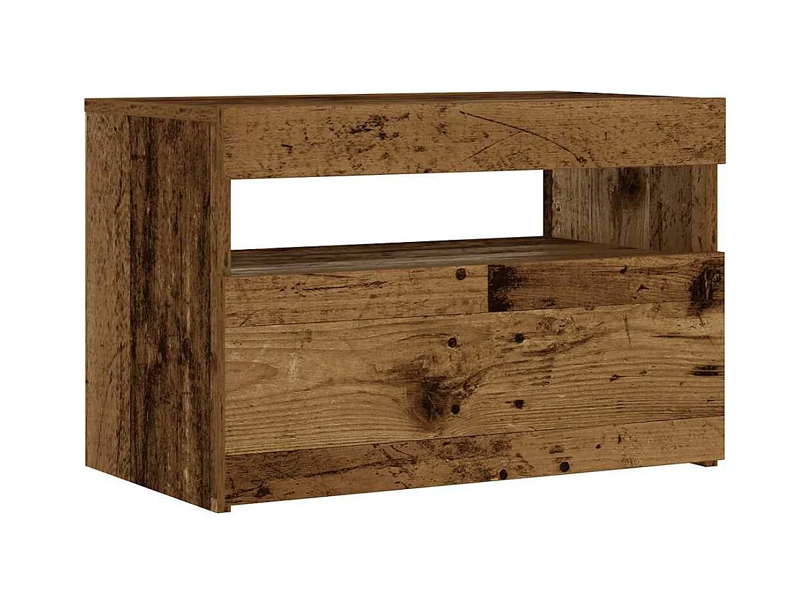 Table de chevet avec lumières LED vieux bois bois d'ingénierie