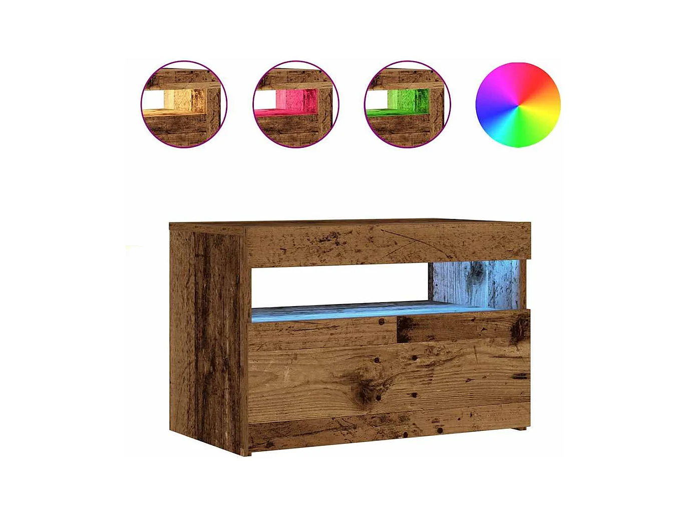 Table de chevet avec lumières LED vieux bois bois d'ingénierie