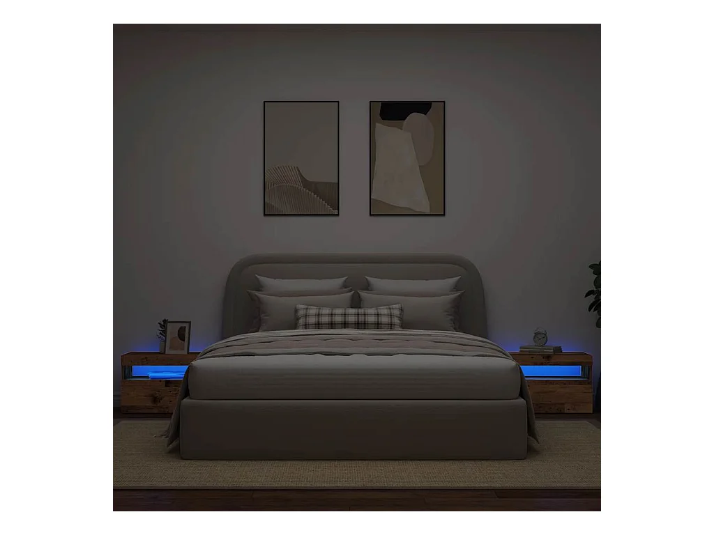 Tables de chevet 2 pièces avec LED vieux bois 60x35x40 cm