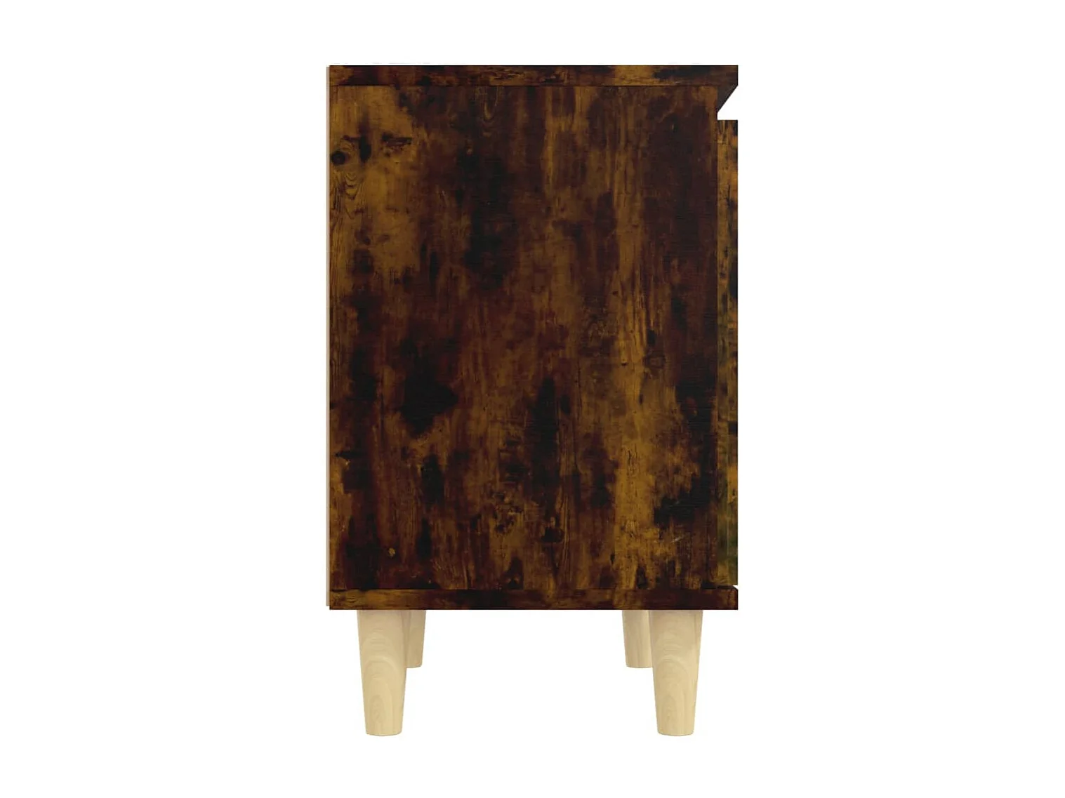 Table de chevet avec pieds en bois solide Chêne fumé 40x35x69cm