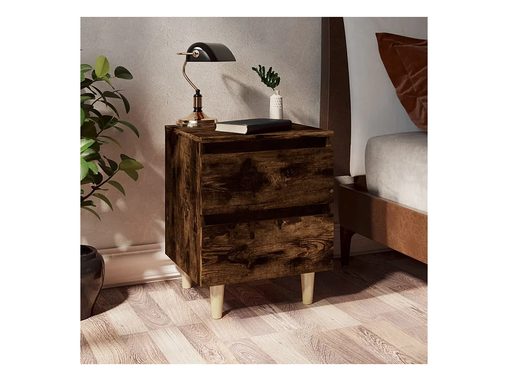 Table de chevet avec pieds en bois solide Chêne fumé 40x35x69cm