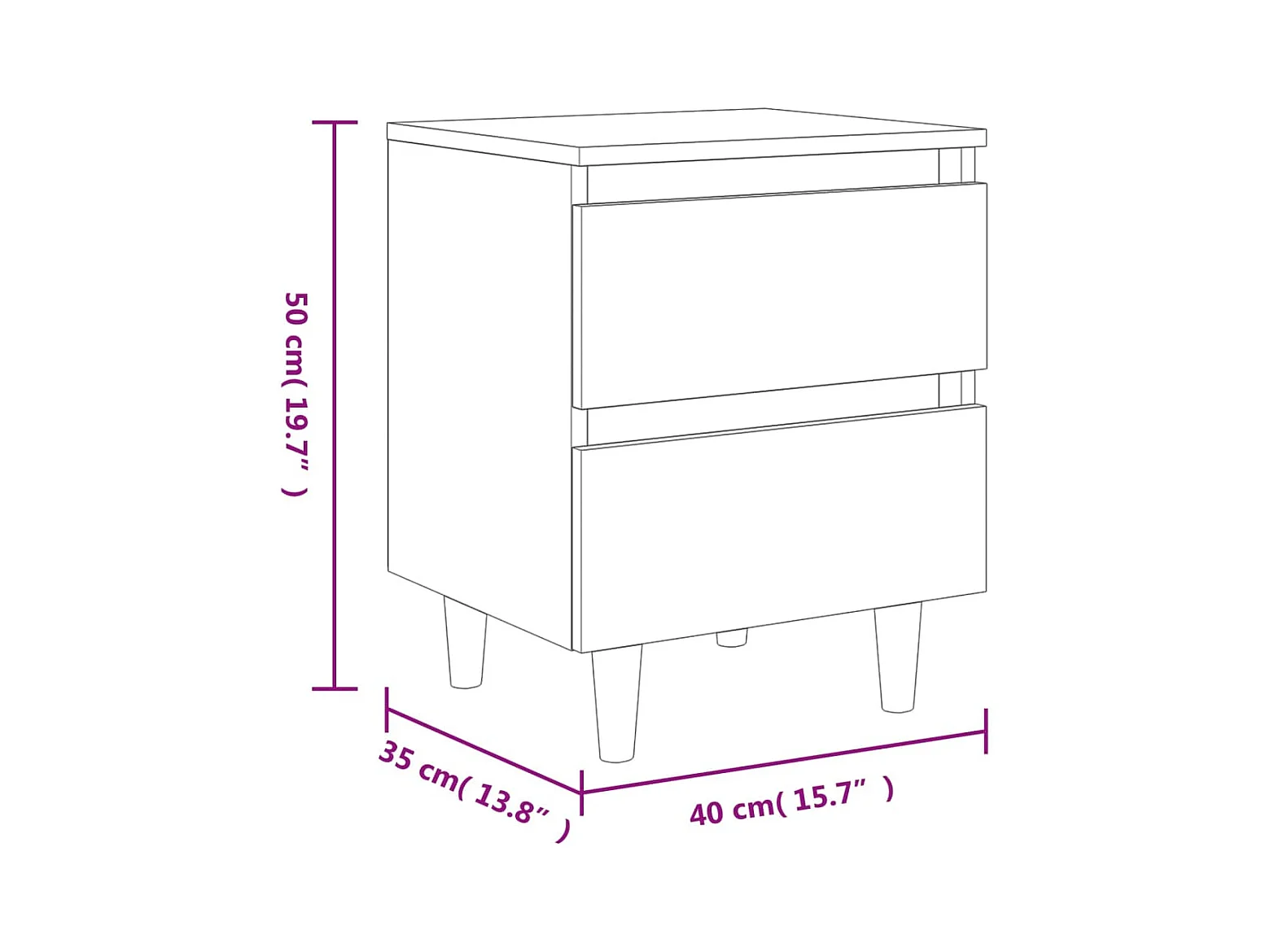 Table de chevet avec pieds en pin Chêne sonoma 40x35x50 cm