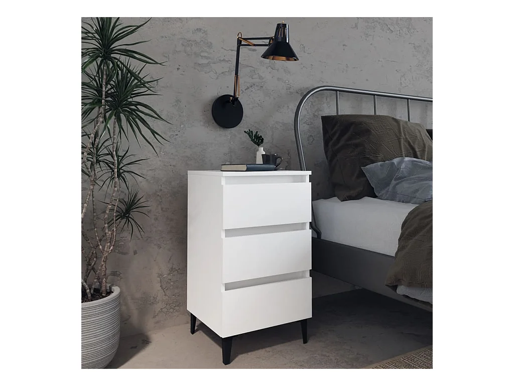 Table de chevet avec pieds en métal blanc 40x35x69 cm