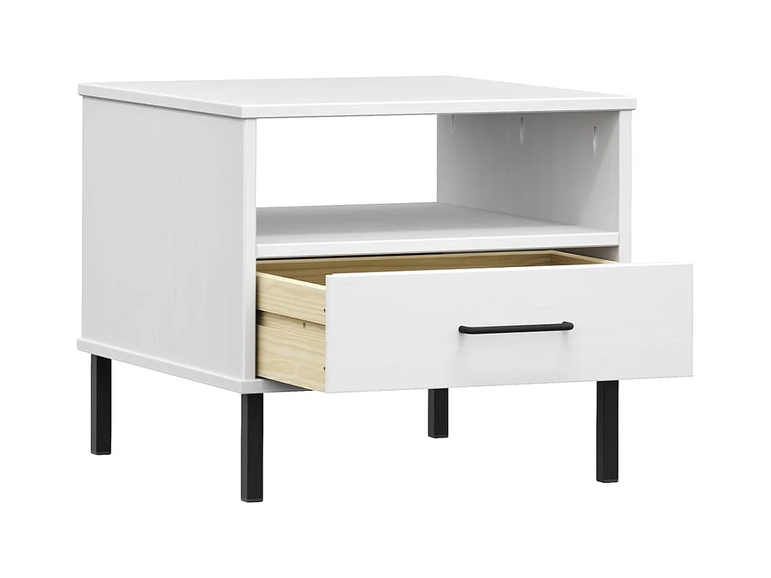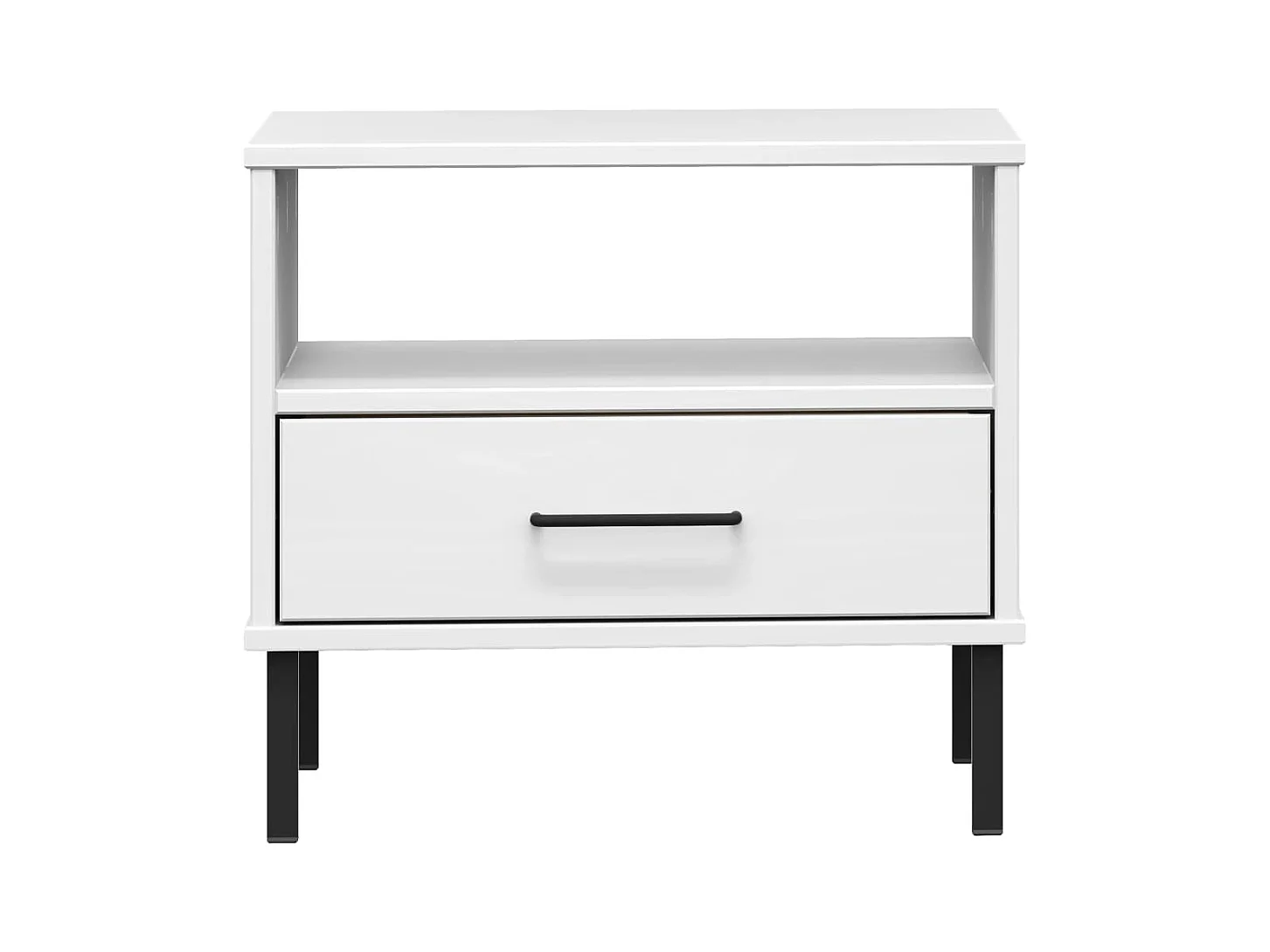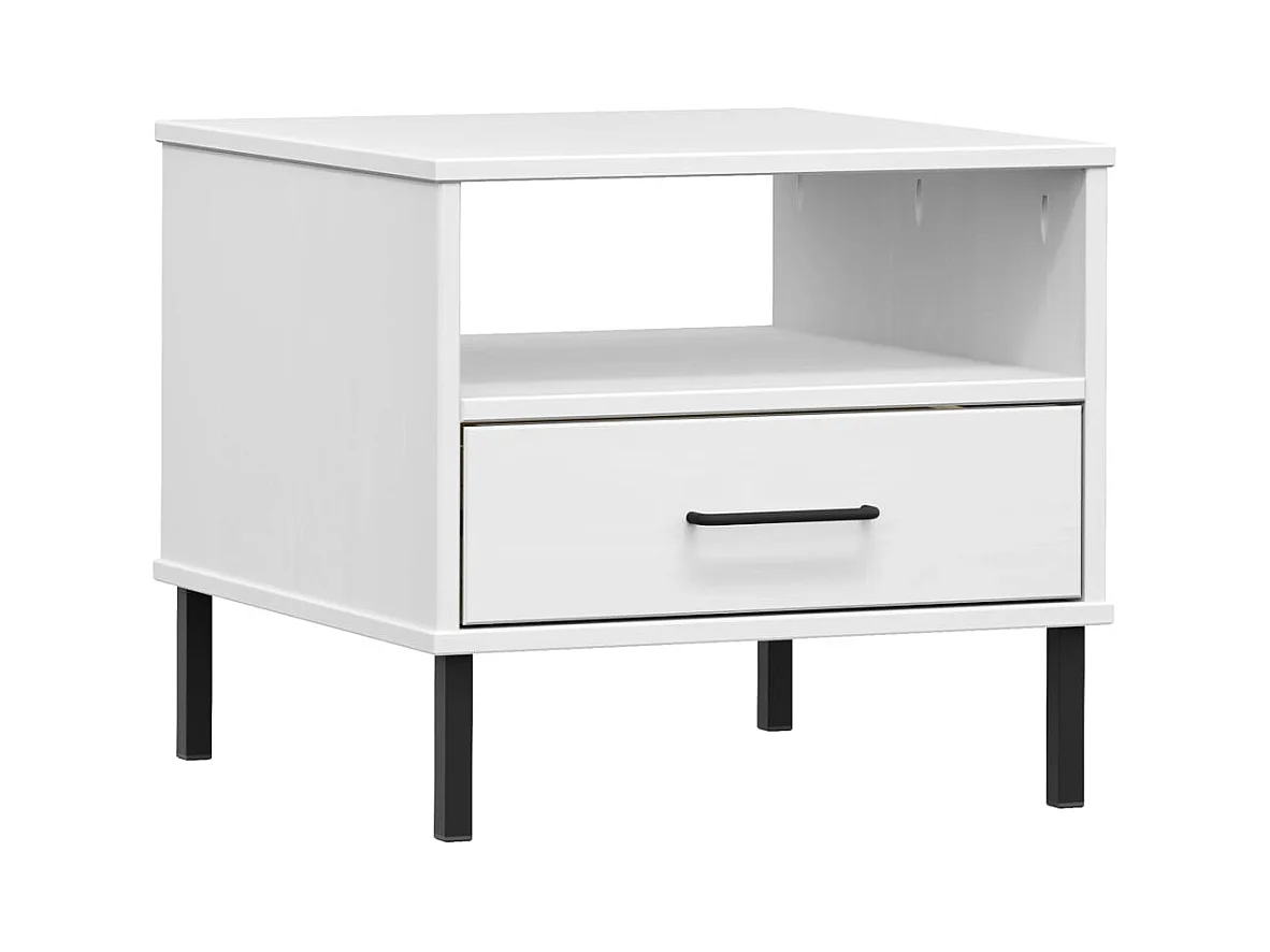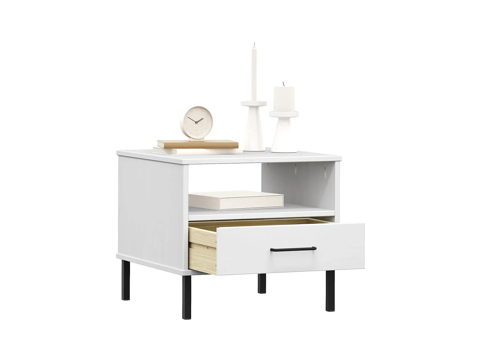 Table de chevet avec pieds en métal Blanc Bois pin massif OSLO
