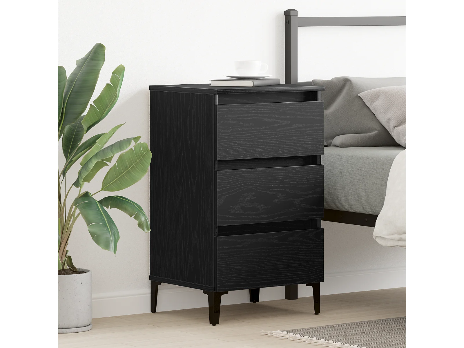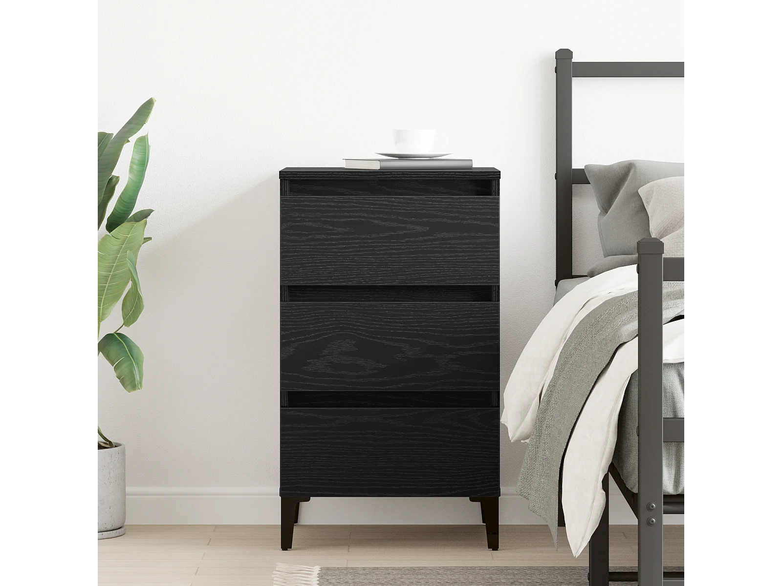Table de chevet avec pieds en métal Noir Chêne 40x35x69 cm