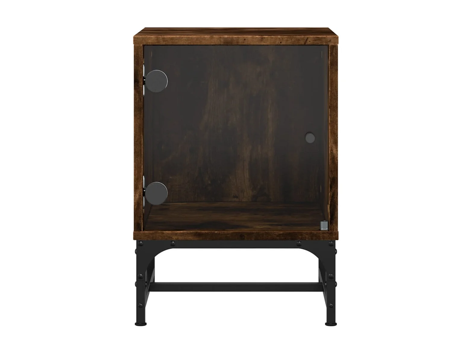 Table de chevet avec porte en verre chêne fumé 35x37x42 cm