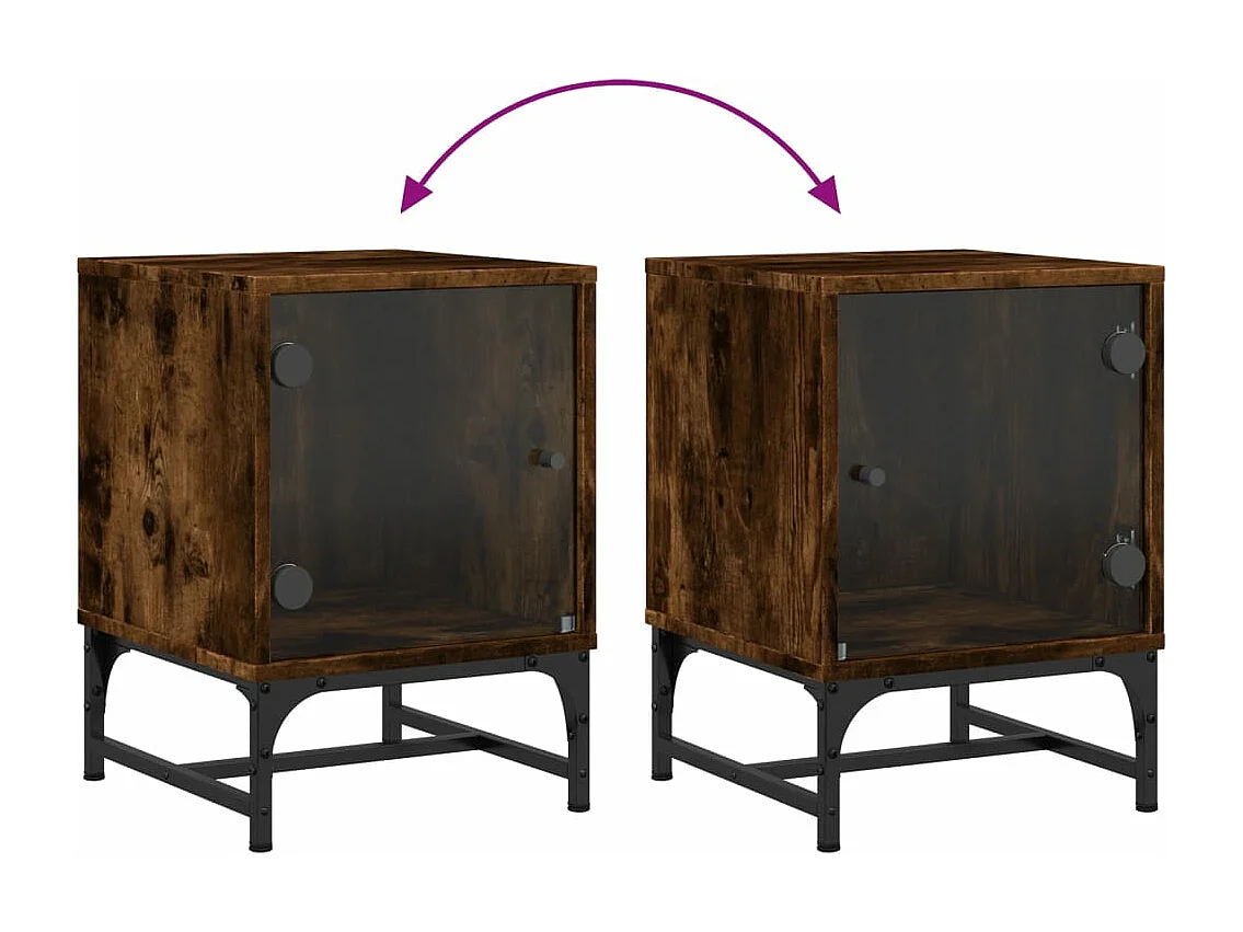 Tables de chevet et portes vitrées 2pièces chêne marron 35x37x42cm