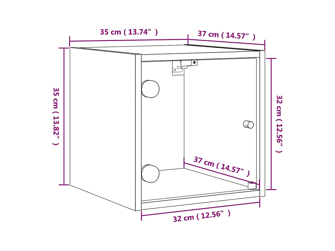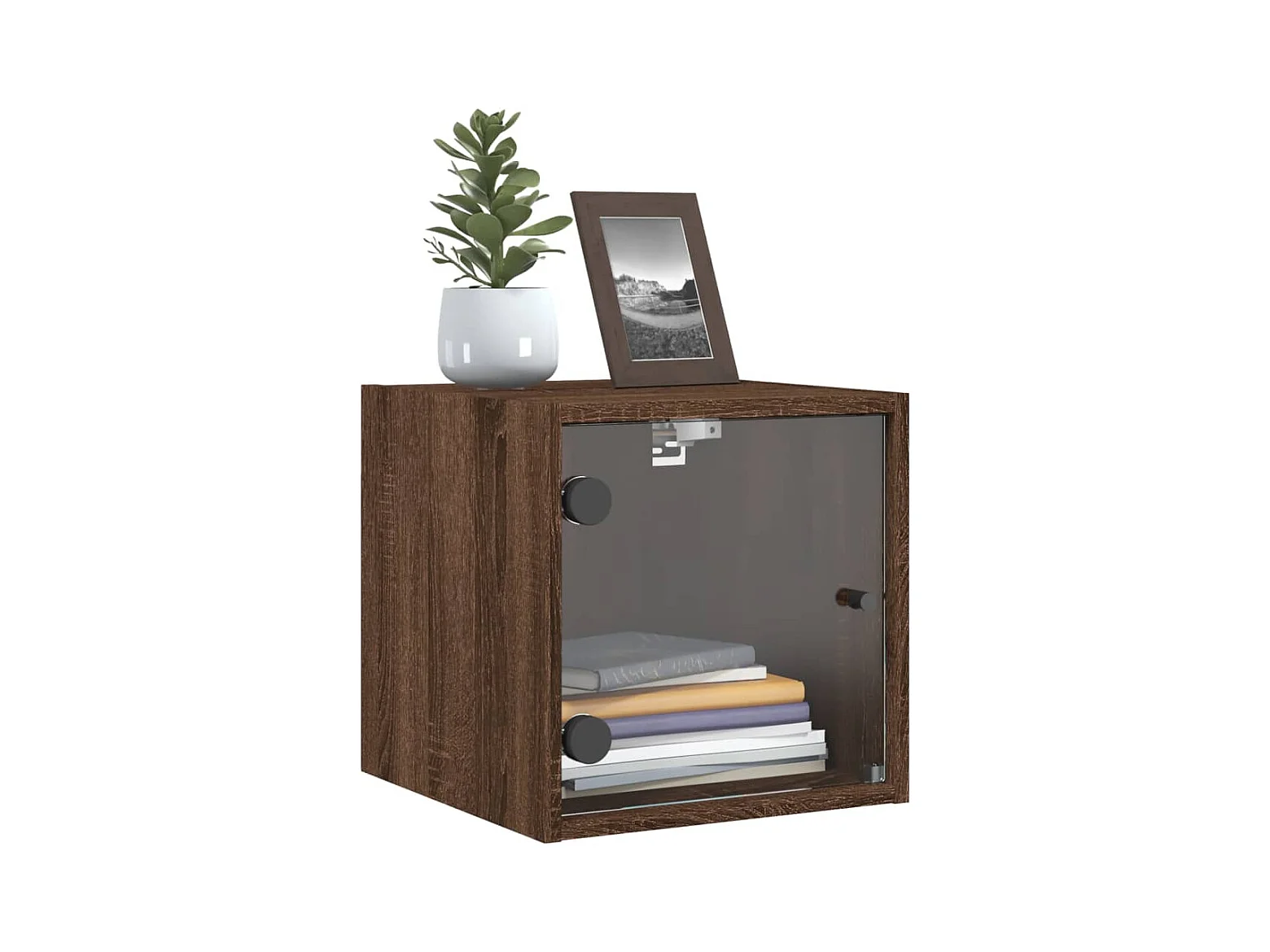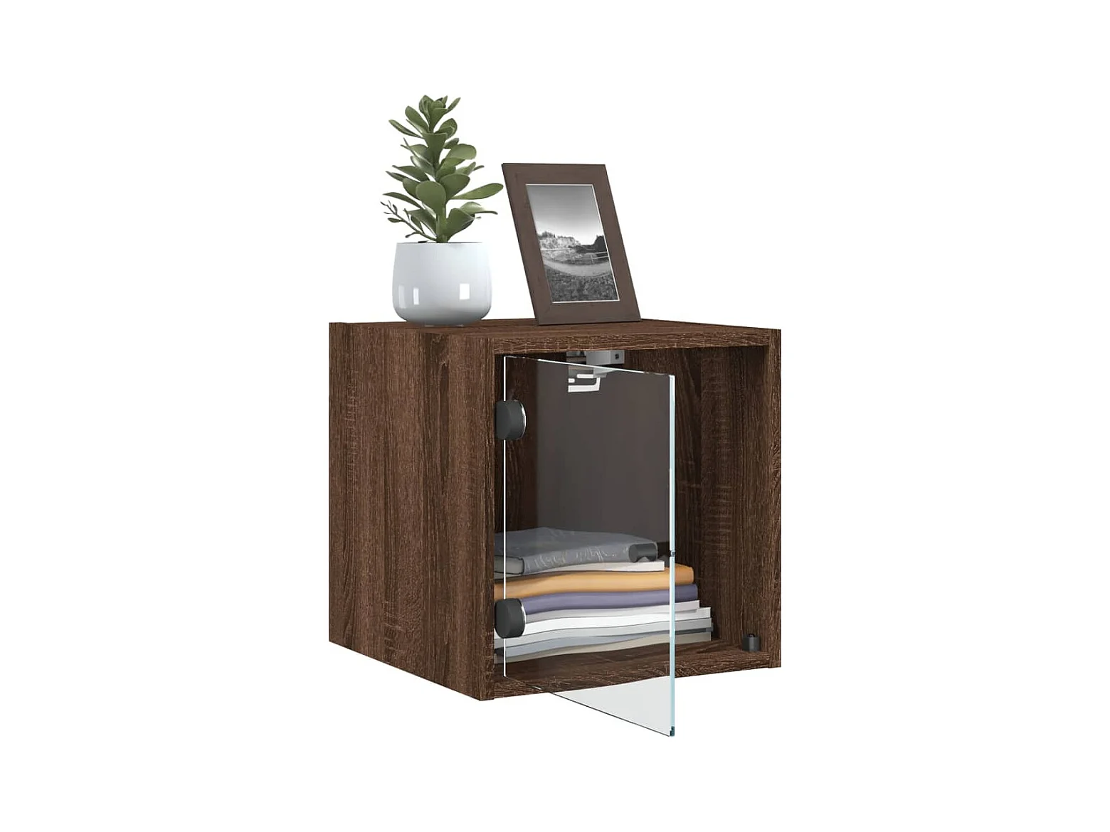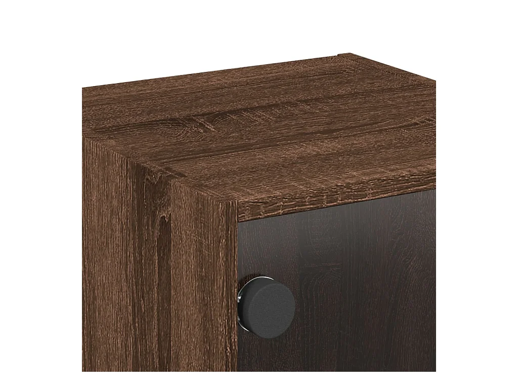 Table de chevet avec porte en verre chêne marron 35x37x35 cm