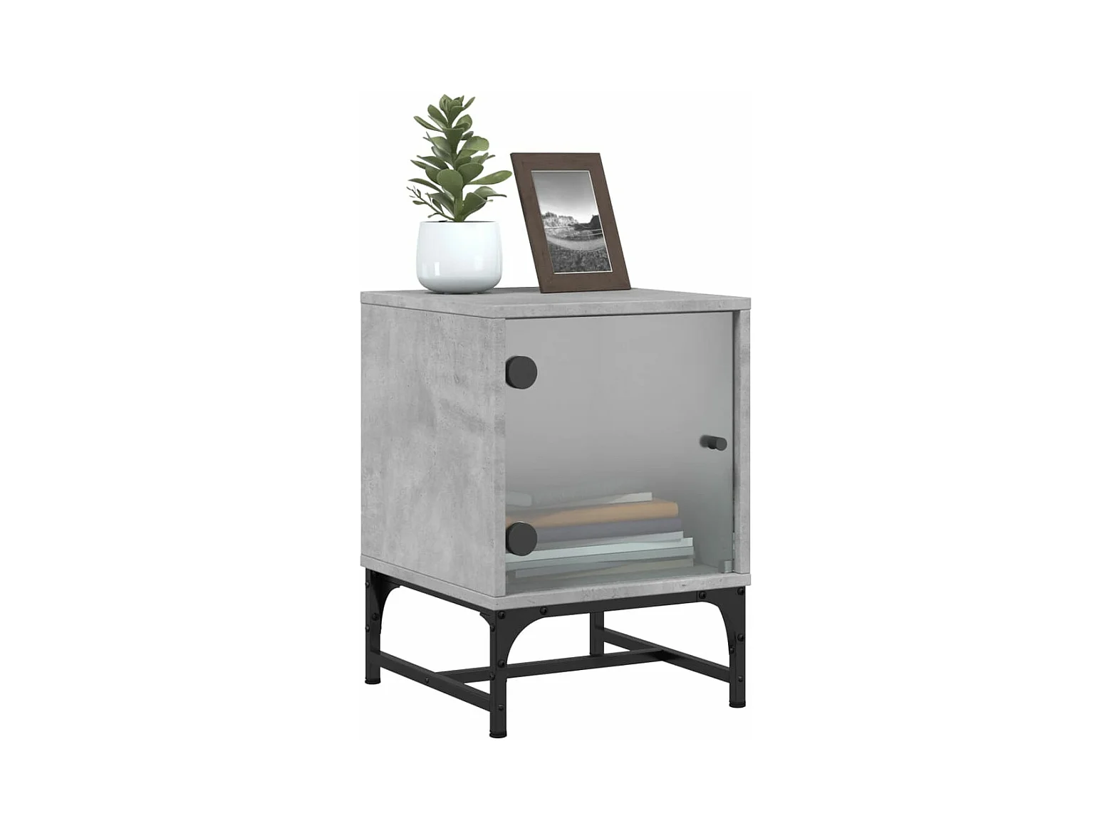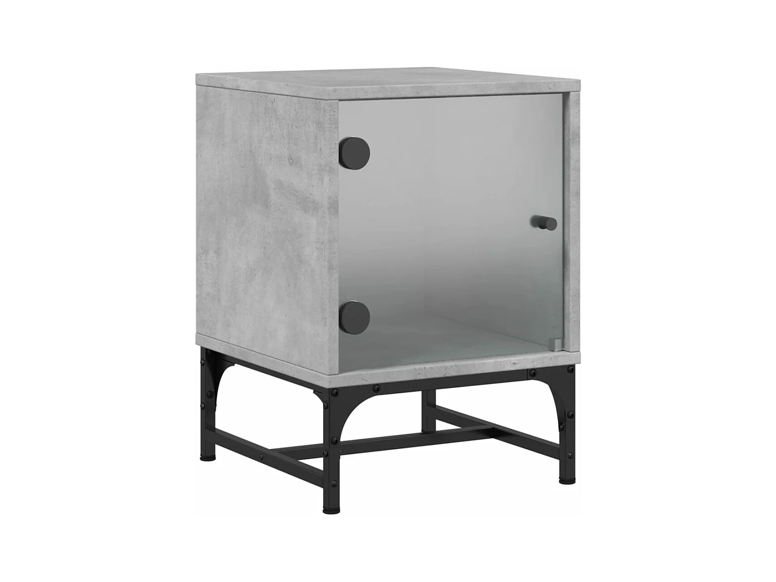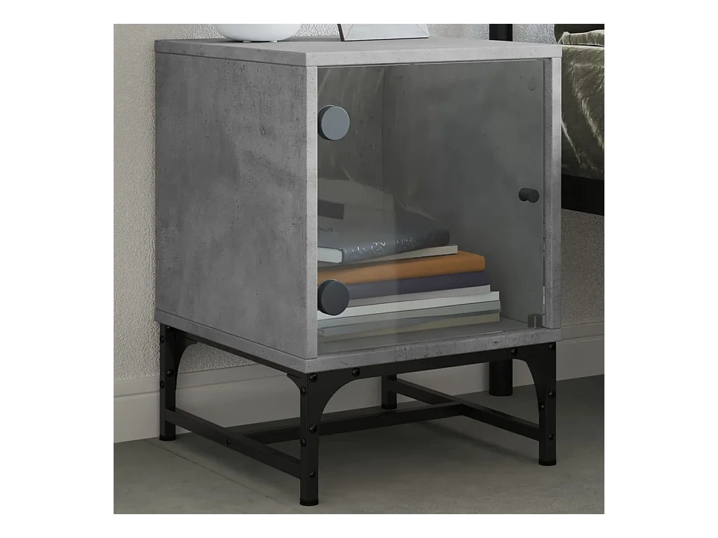 Table de chevet avec porte en verre gris béton 35x37x50 cm