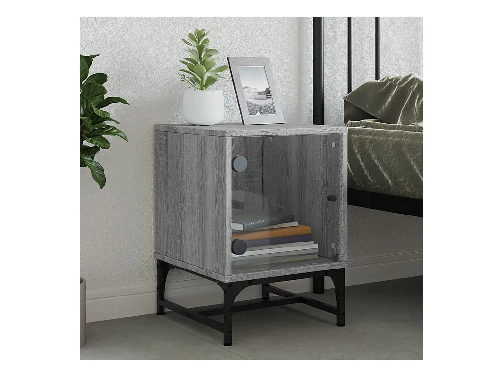 Table de chevet avec porte en verre sonoma gris 35x37x50 cm