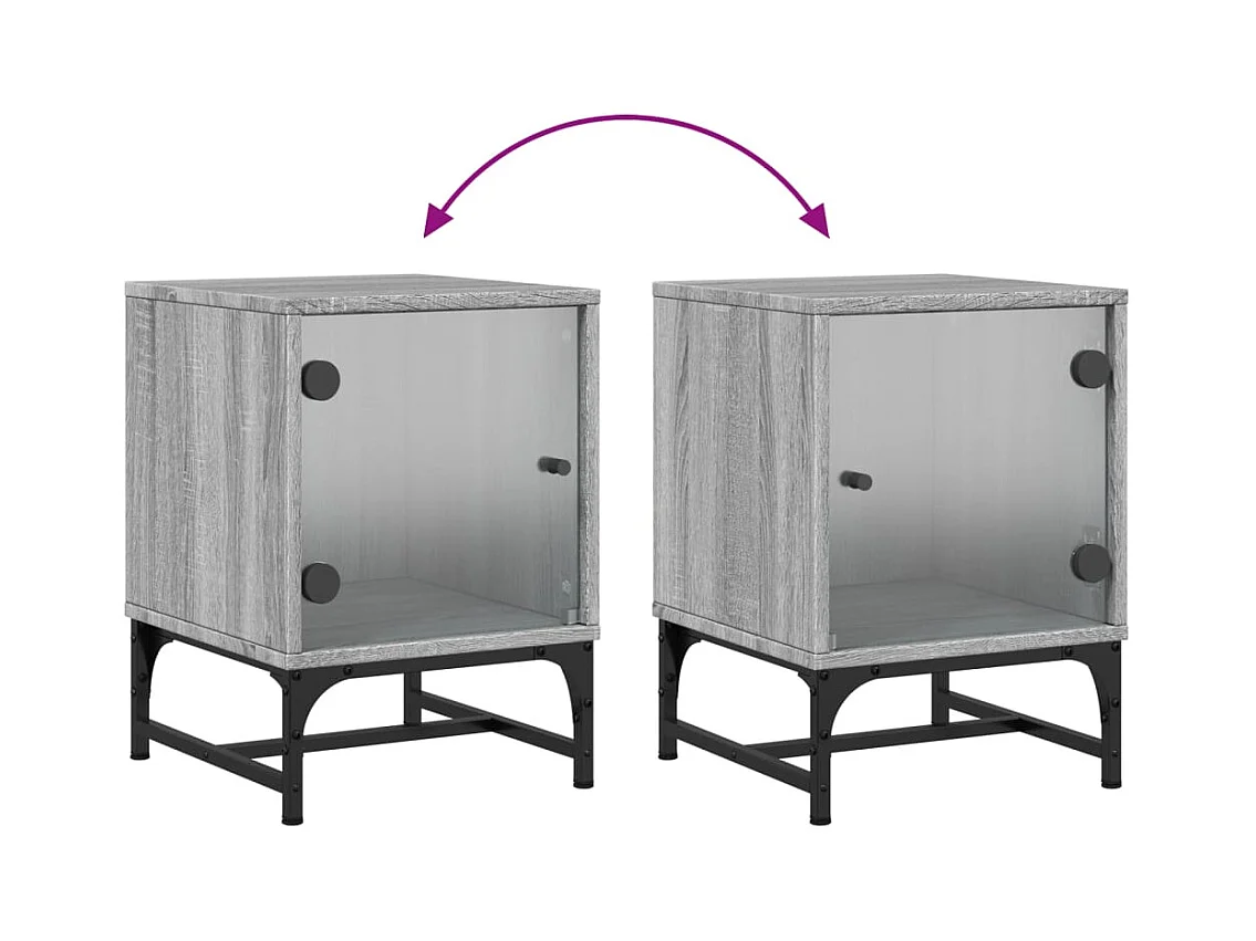 Tables de chevet et portes vitrées 2pcs sonoma gris 35x37x35cm