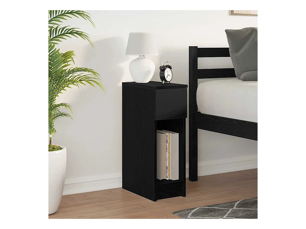 Table de chevet avec tiroir chêne noir 20x36x60 cm