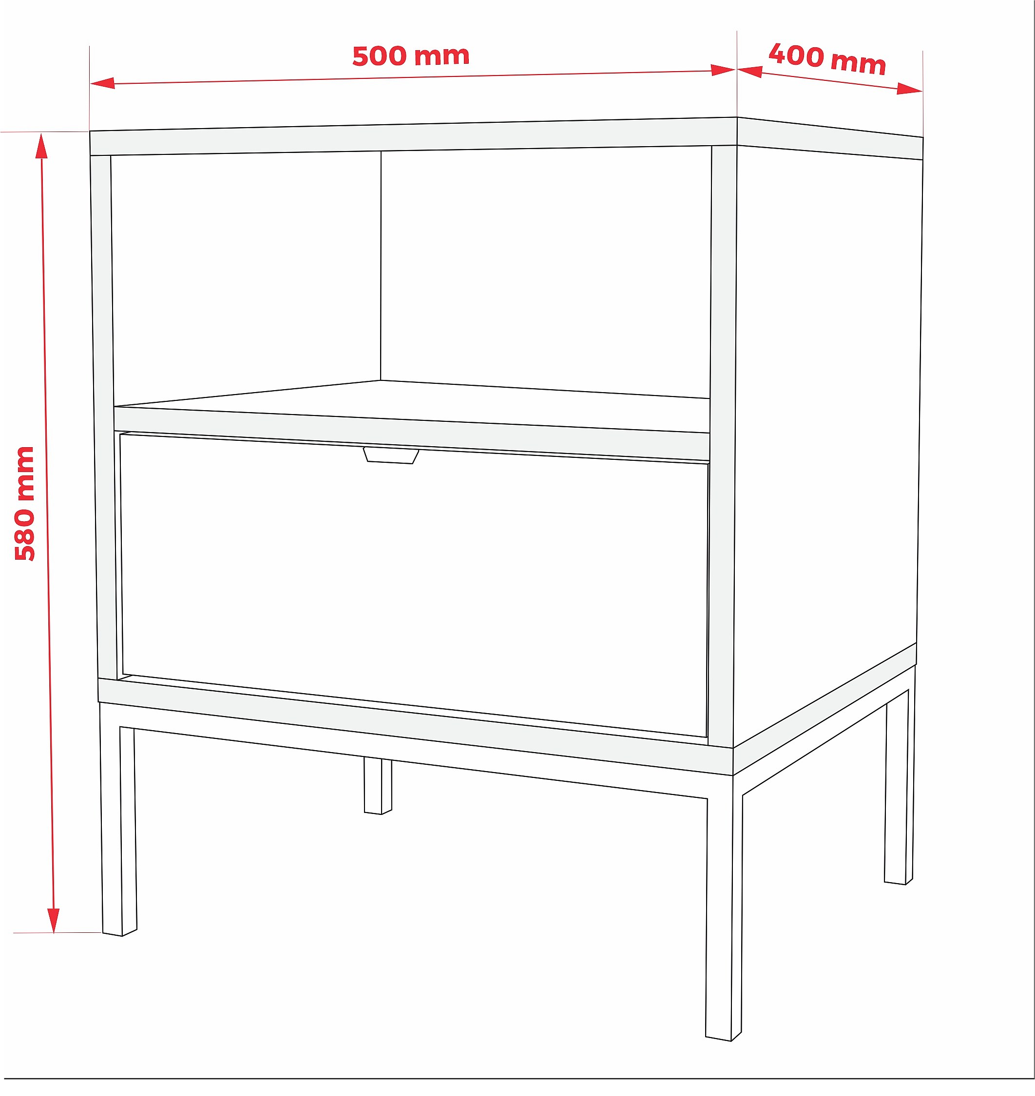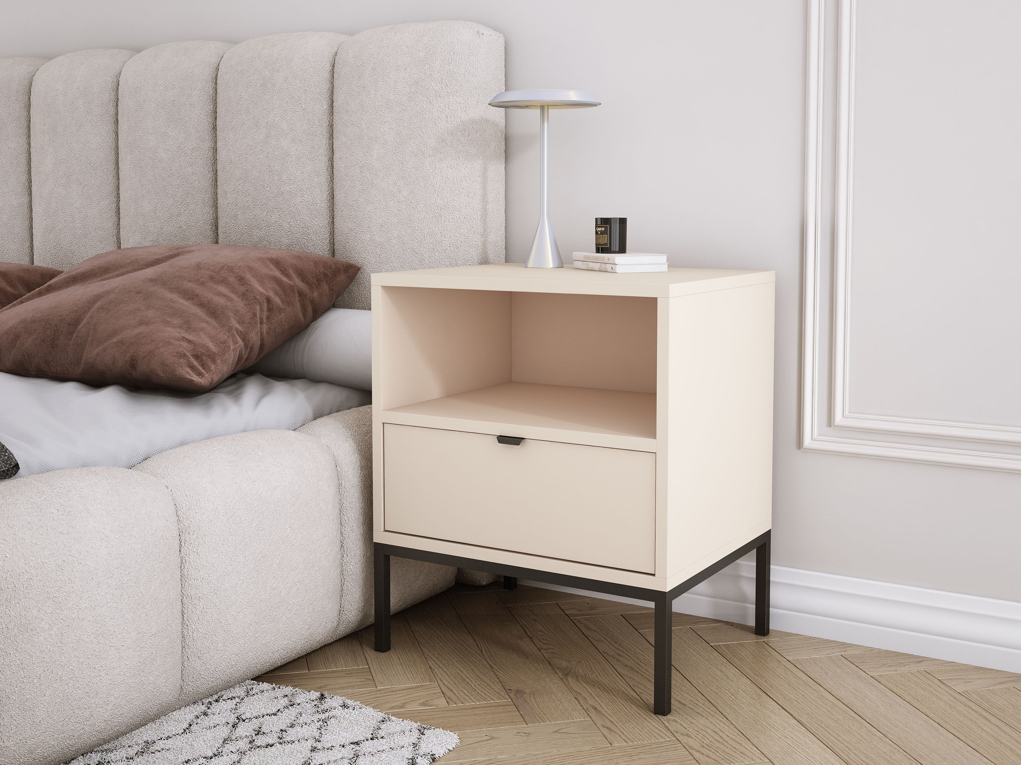 Table de chevet avec tiroir et cadre, poignée dorée, Cachemire, 50 x 40 x 58 cm