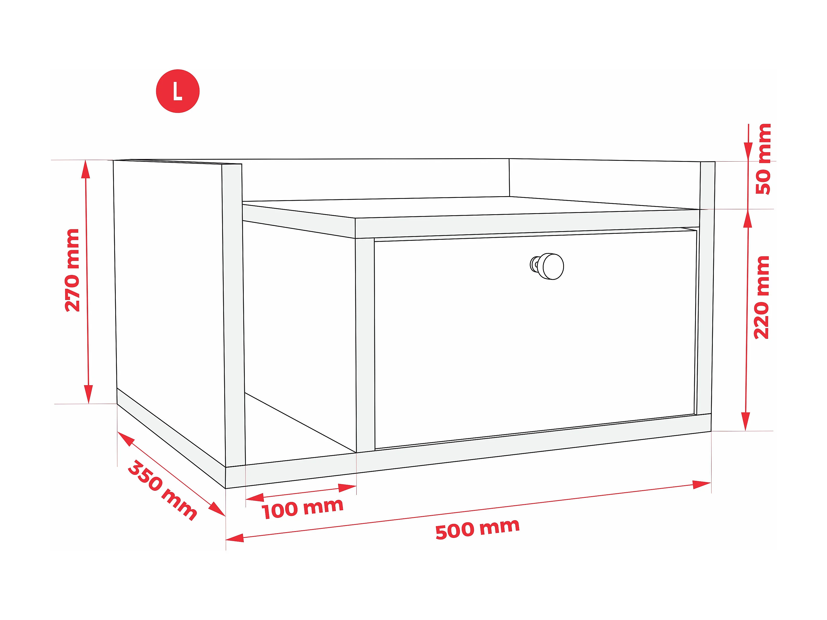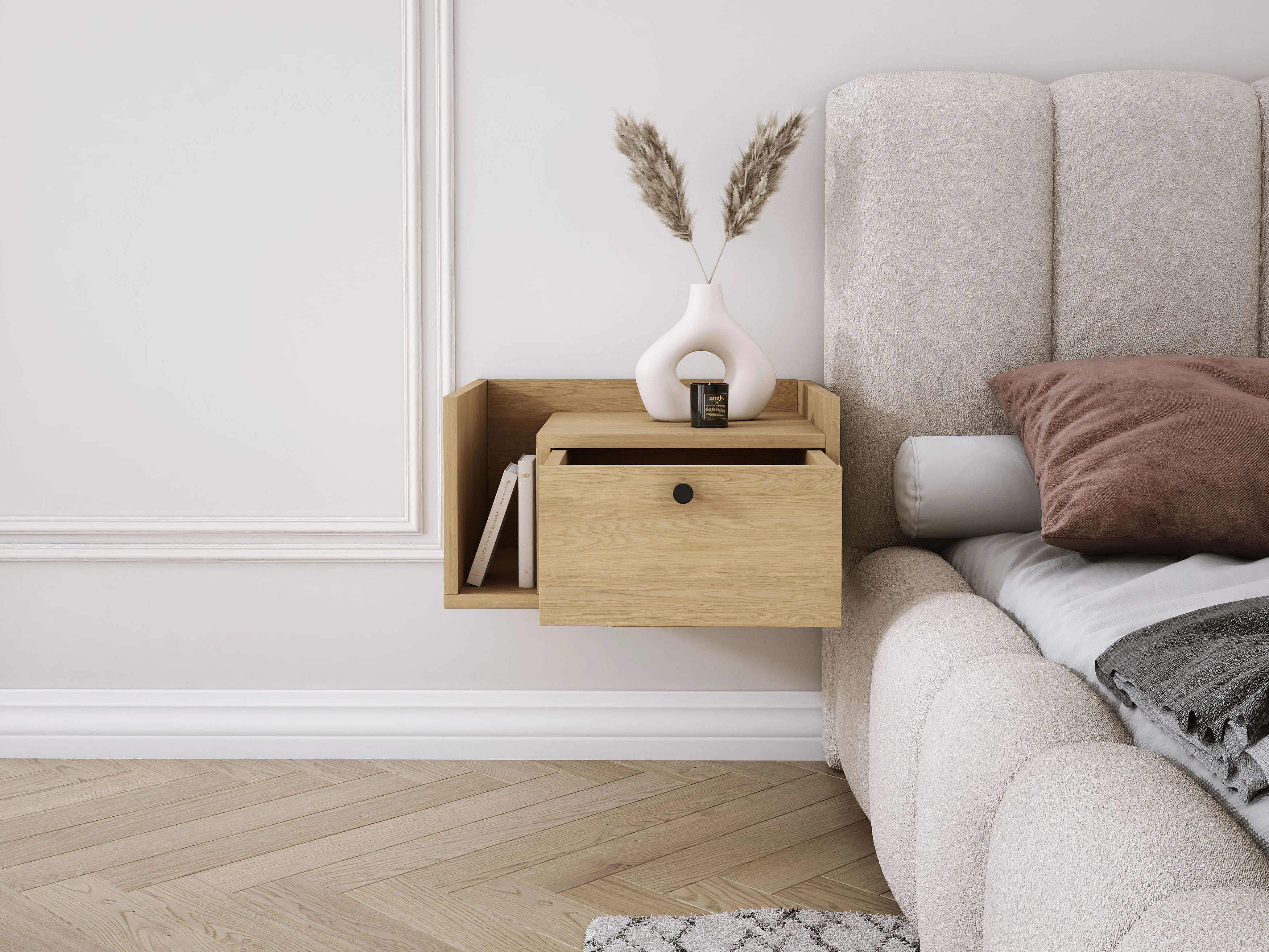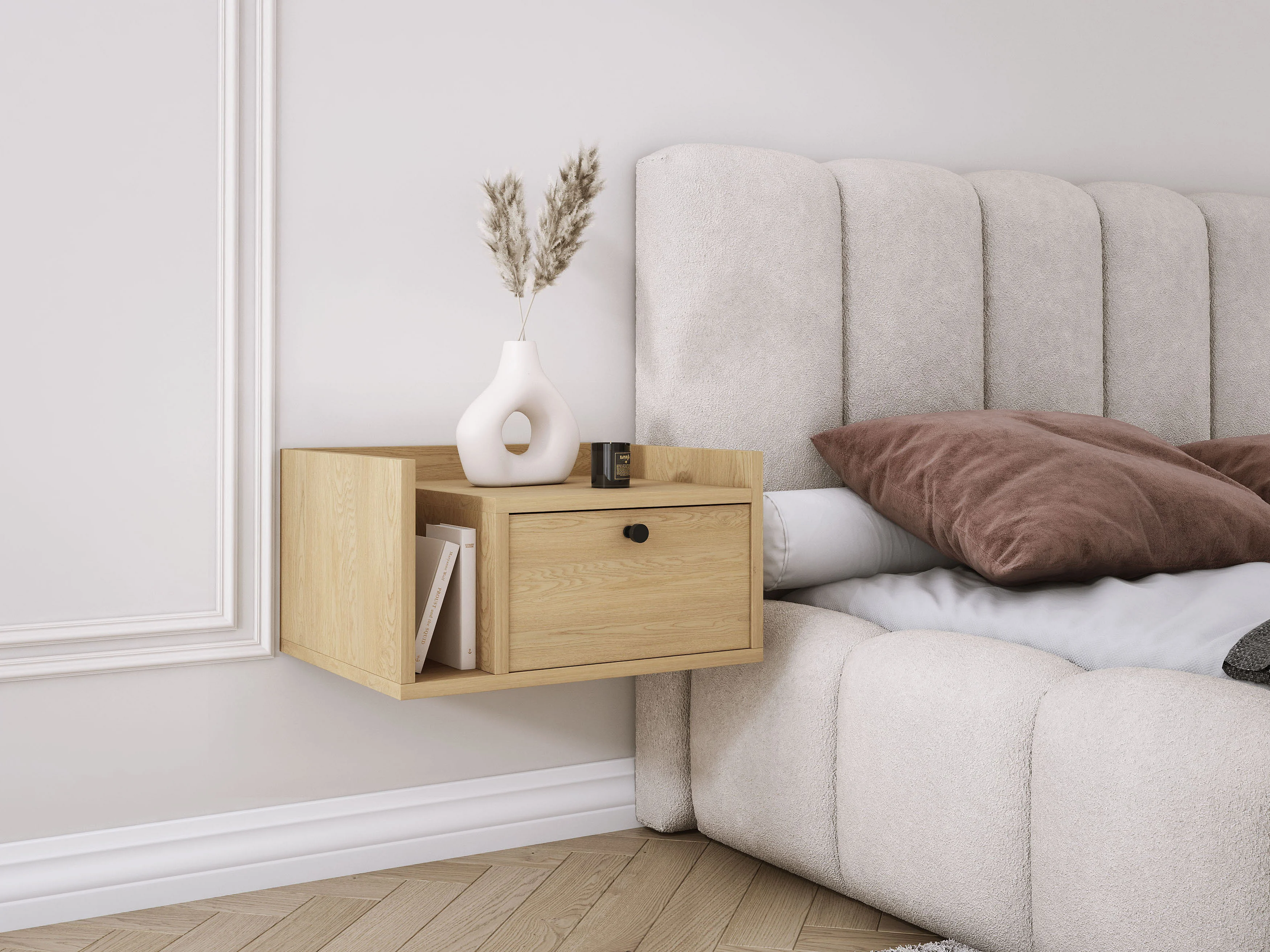 Table de chevet avec tiroir et poignée dorée, Chêne Cremona, 50 x 35 x 27 cm, côté gauche