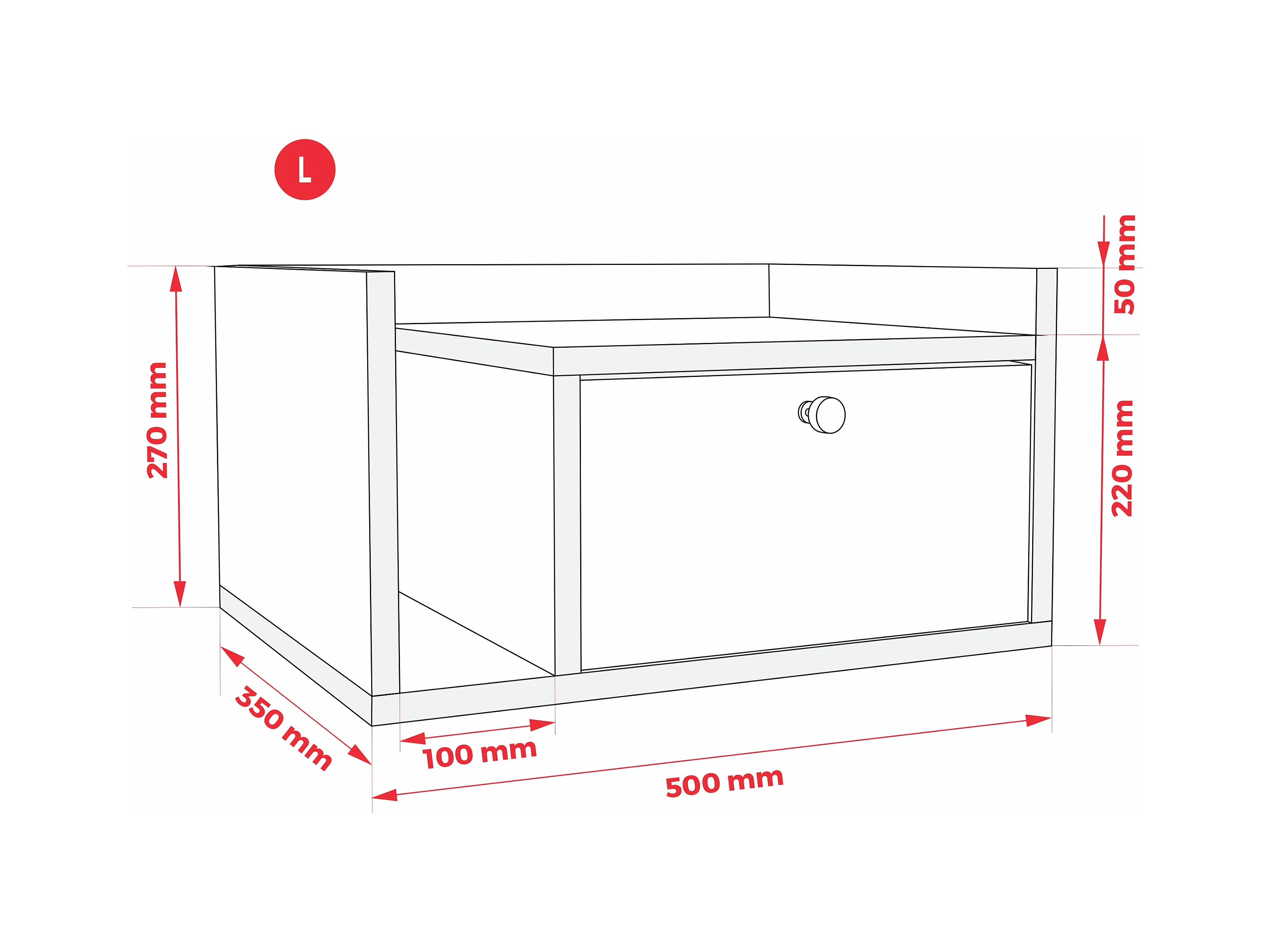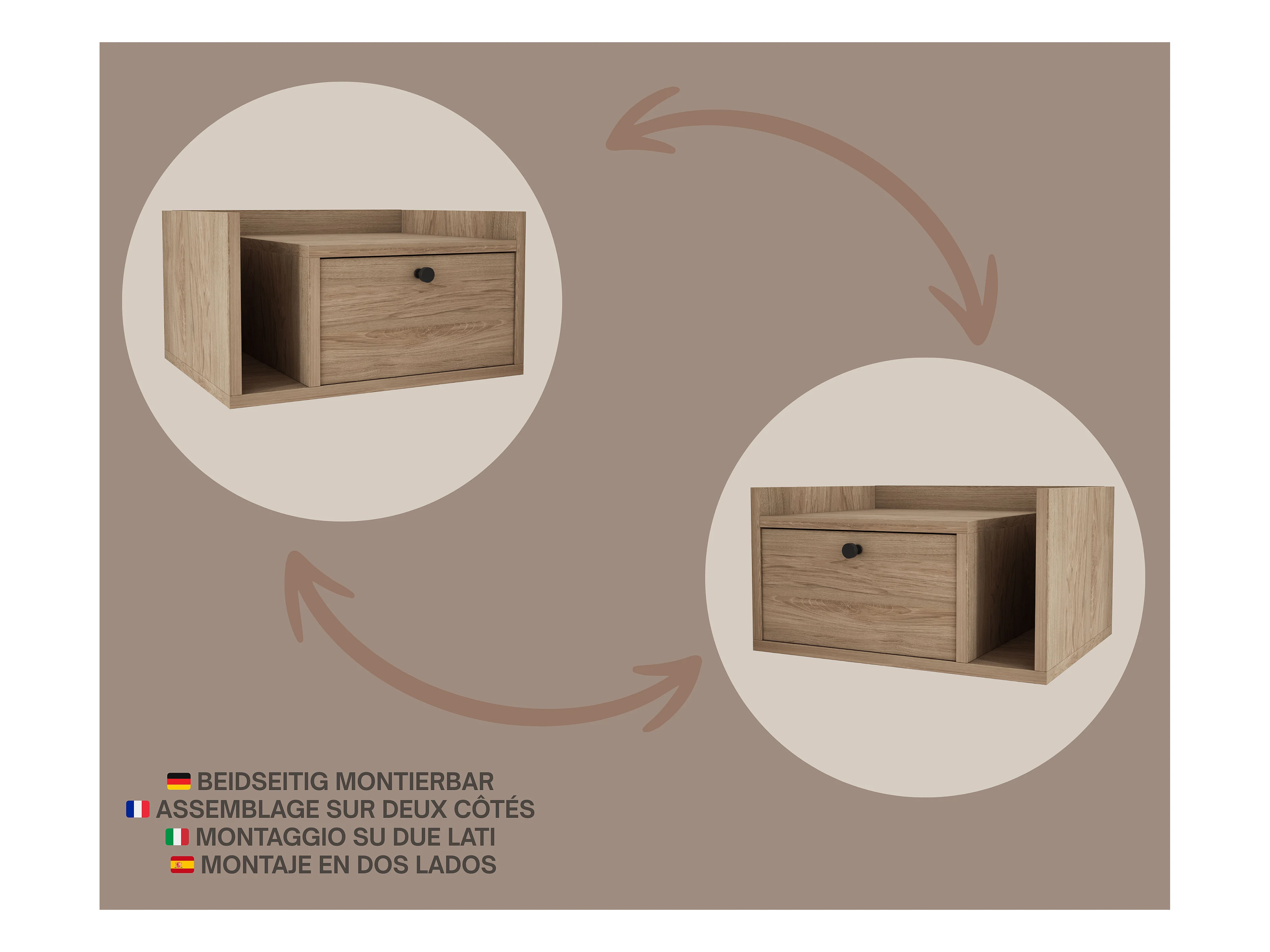 Table de chevet avec tiroir et poignée dorée, Noyer foncé Rockford, 50 x 35 x 27 cm, côté droit