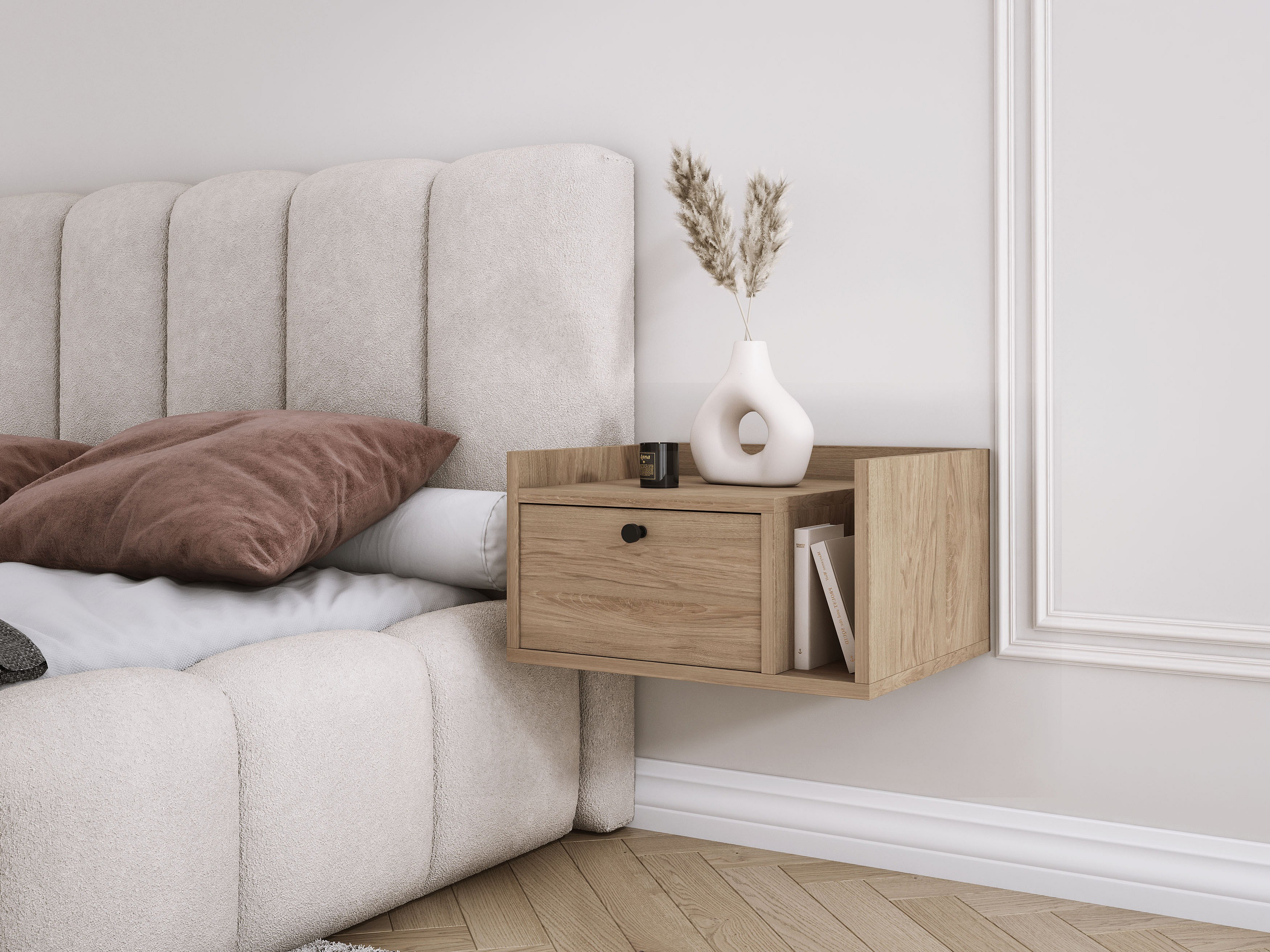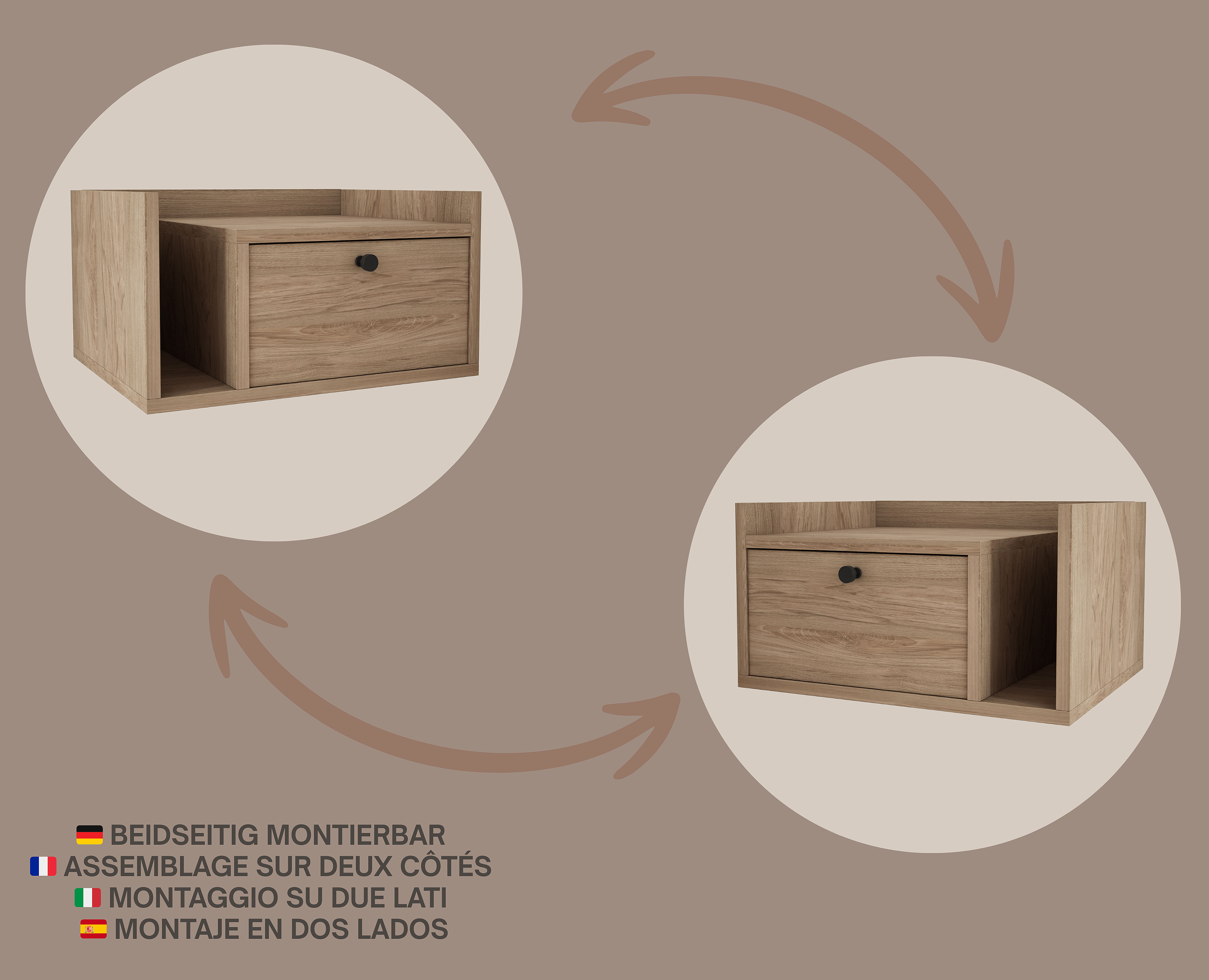 Table de chevet avec tiroir et poignée dorée, Noyer foncé Rockford, 50 x 35 x 27 cm, côté gauche